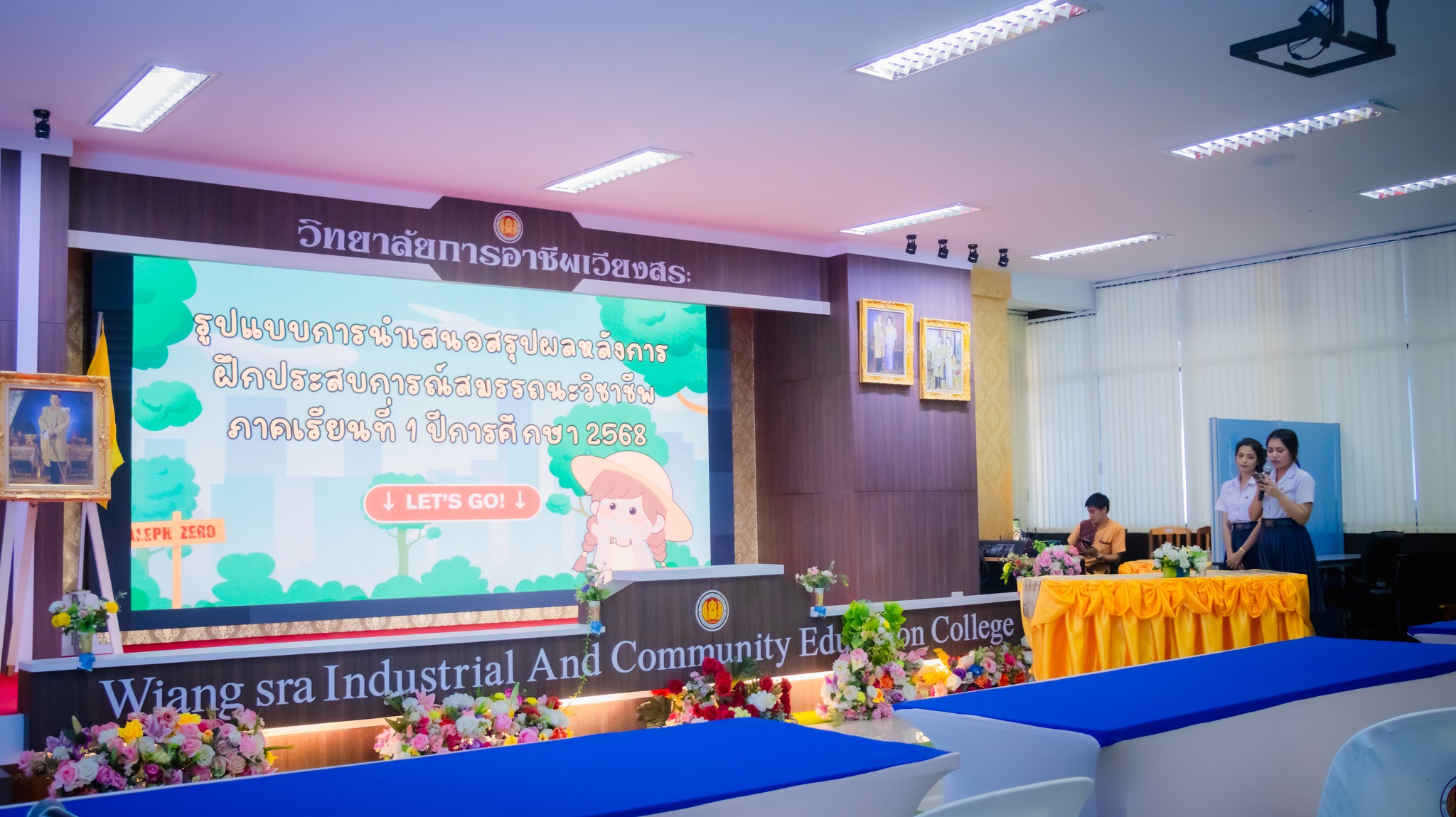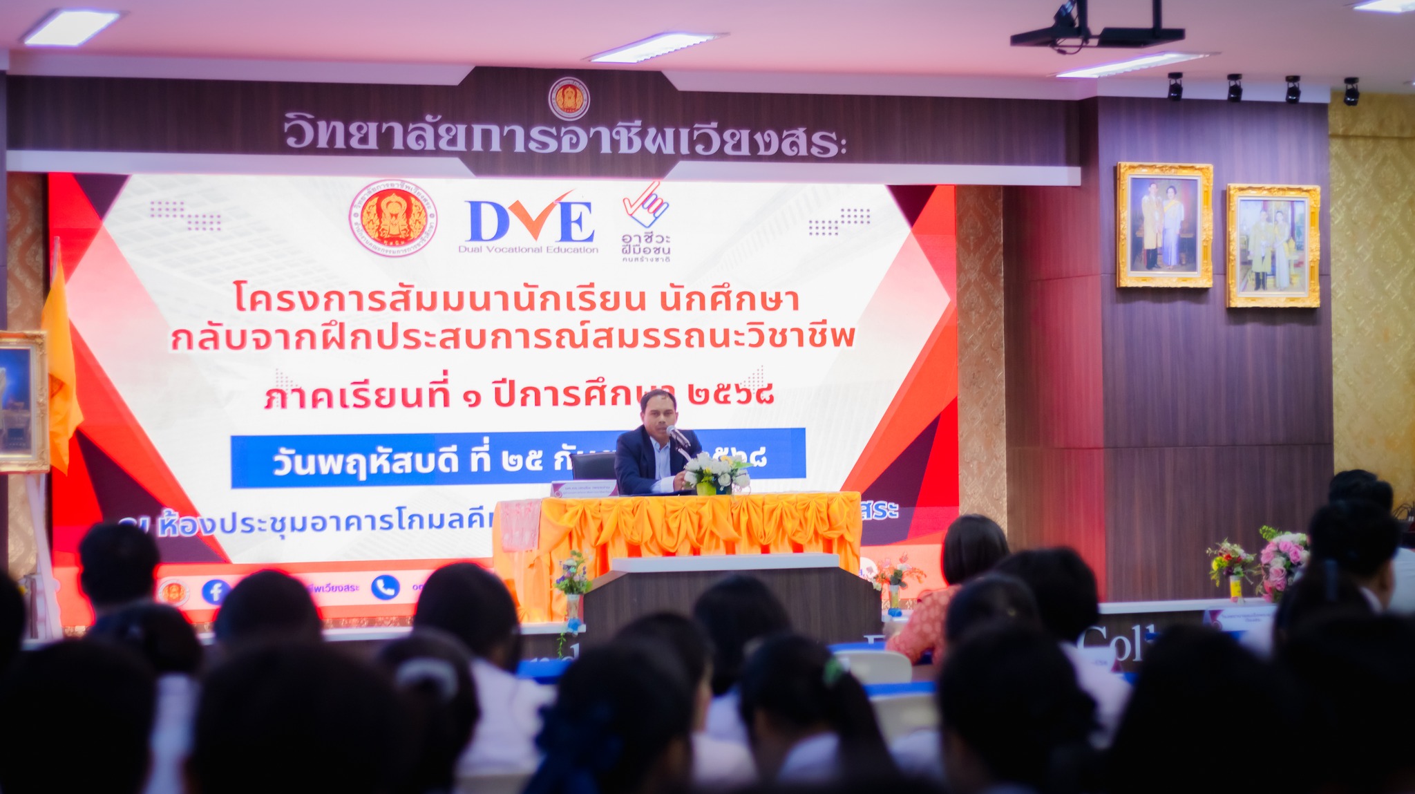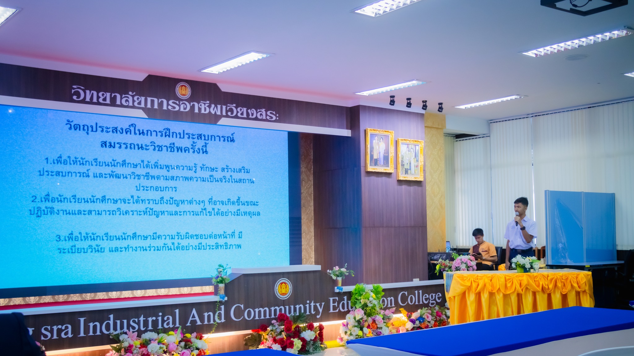 โครงการสัมมนานักเรียน นักศึกษา กลับจากฝึกประสบการณ์สมรรถนะวิชาชีพ ภาคเรียนที่ 1 ปีการศึกษา 2568 การจัดโครงการในครั้งนี้ มีวัตถุประสงค์เพื่อเปิดโอกาสให้นักเรียน นักศึกษาได้สะท้อนผลการเรียนรู้จากการฝึกประสบการณ์จริง แลกเปลี่ยนความคิดเห็นและประสบการณ์กับเพื่อนร่วมรุ่นและครูผู้สอน พร้อมทั้งนำข้อค้นพบมาปรับใช้ในการพัฒนาตนเอง เสริมสร้างทักษะสมรรถนะวิชาชีพให้มีความรู้ ความสามารถ และทัศนคติที่เหมาะสมต่อการทำงานในสถานประกอบการอย่างมีประสิทธิภาพ