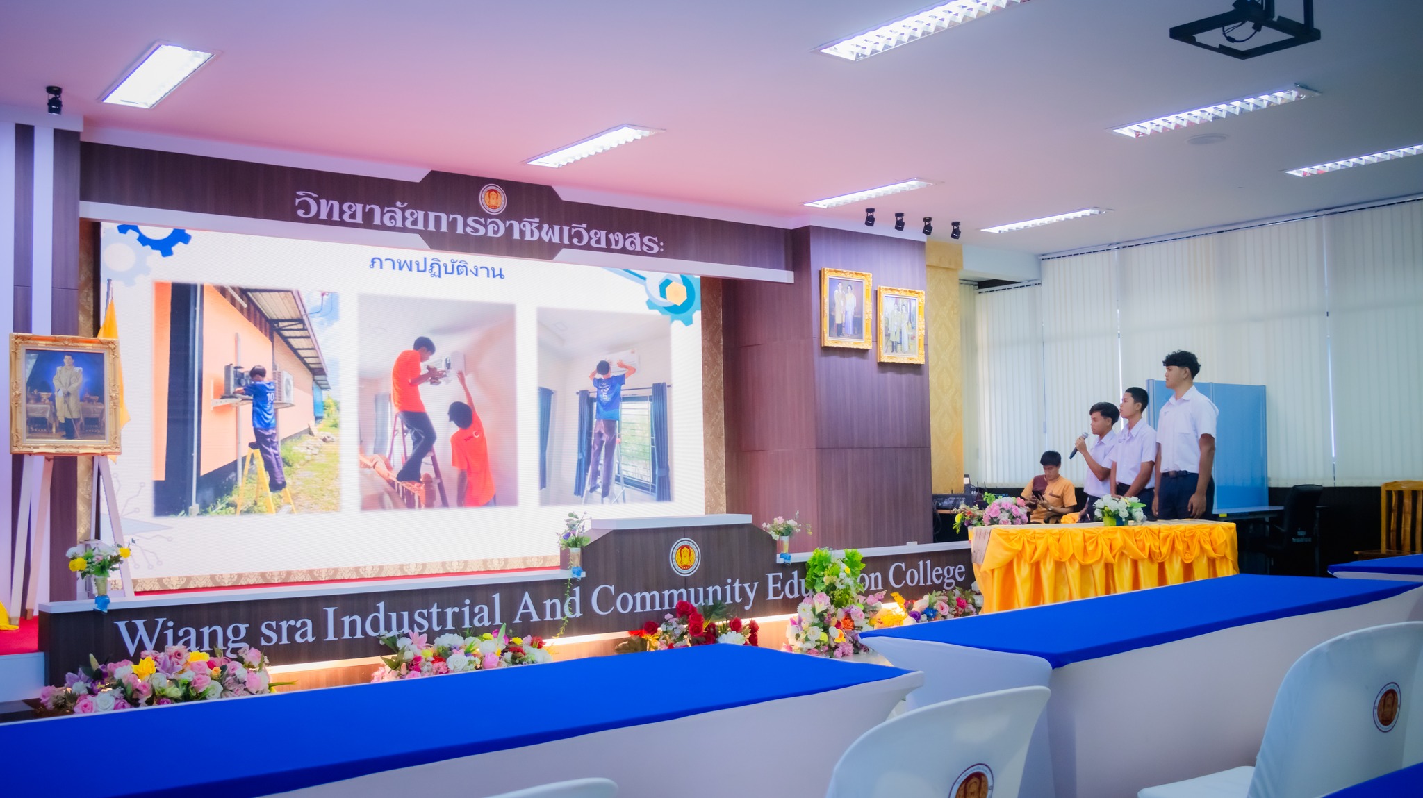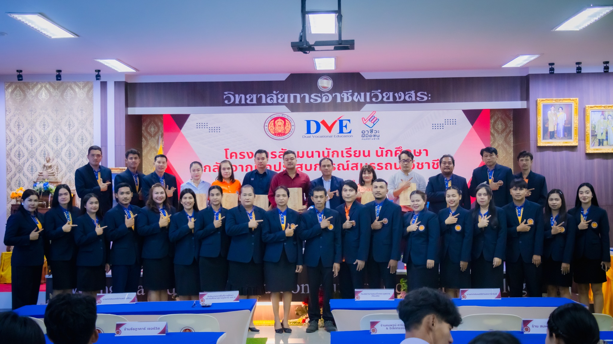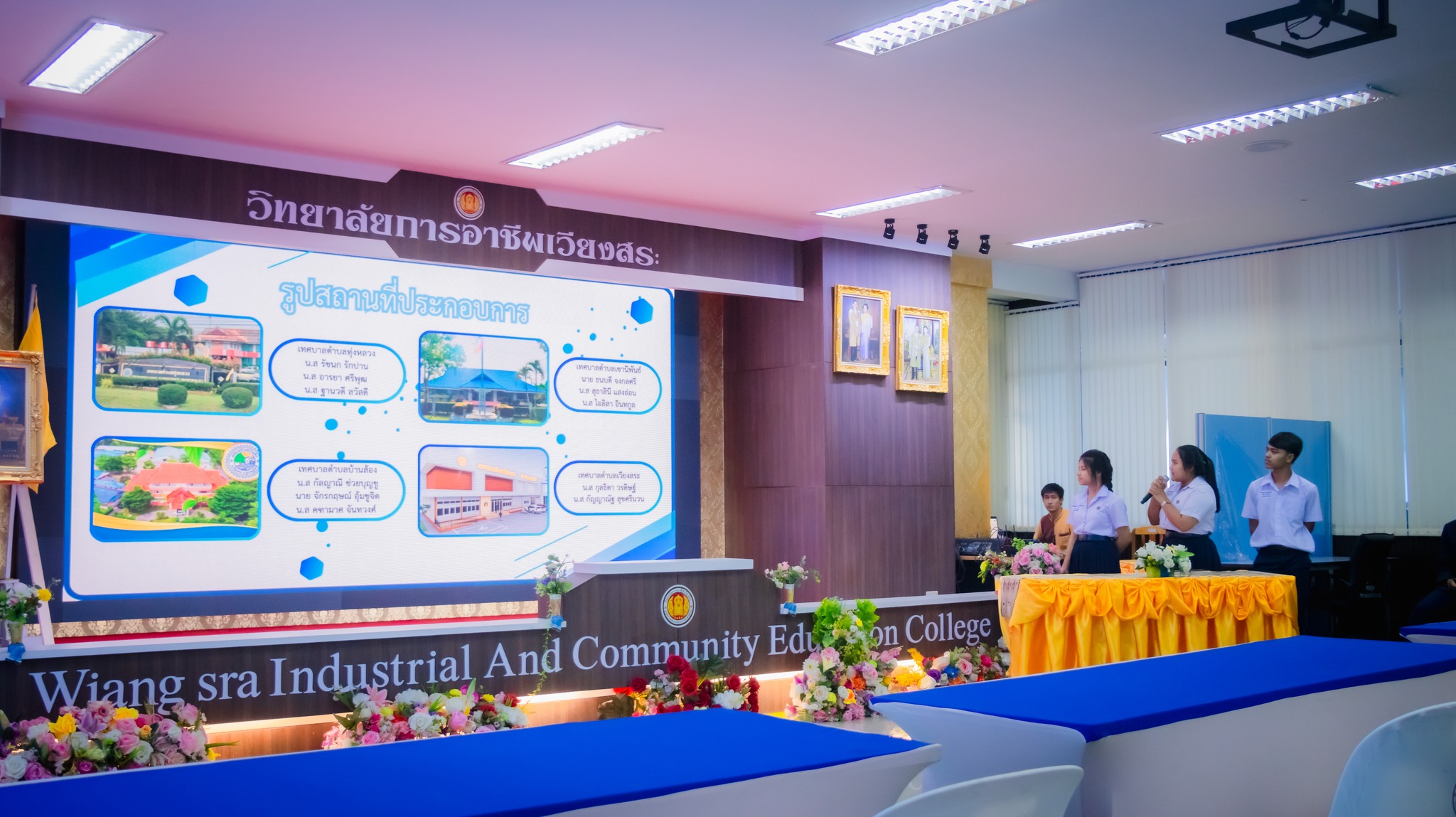 วันพฤหัสบดี ที่ 25 กันยายน 2568 ผศ.ดร.ปณชัย เพชรปาน ผู้อำนวยการวิทยาลัยการอาชีพเวียงสระ เป็นประธานกล่าวเปิด “โครงการสัมมนานักเรียน นักศึกษา กลับจากฝึกประสบการณ์สมรรถนะวิชาชีพ” ภาคเรียนที่ 1 ปีการศึกษา 2568 โดยมี นายมนตรี ปรีชา รองผู้อำนวยการฝ่ายบริหารทรัพยากรและฝ่ายวิชาการ กล่าวรายงานฯ ภายใต้การบริหารงานอาชีวศึกษาระบบทวิภาคี นายศุภชัย สมนิล หัวหน้างานอาชีวศึกษาระบบทวิภาคี ผู้รับผิดชอบโครงการ พร้อมด้วย ครู บุคลากรทางการศึกษา ตลอดจนนักเรียนระดับประกาศนียบัตรวิชาชีพ ปวช.2 ทวิภาคี กลุ่ม 5,6 และปวช.3 ทุกสาขาวิชา และนักศึกษาระดับประกาศนียบัตรวิชาชีพชั้นสูง ปวส.2 ทุกสาขาวิชา เข้าร่วมกิจกรรมอย่างพร้อมเพรียง ณ ห้องประชุมอาคารโกมลคีมทอง วิทยาลัยการอาชีพเวียงสระ