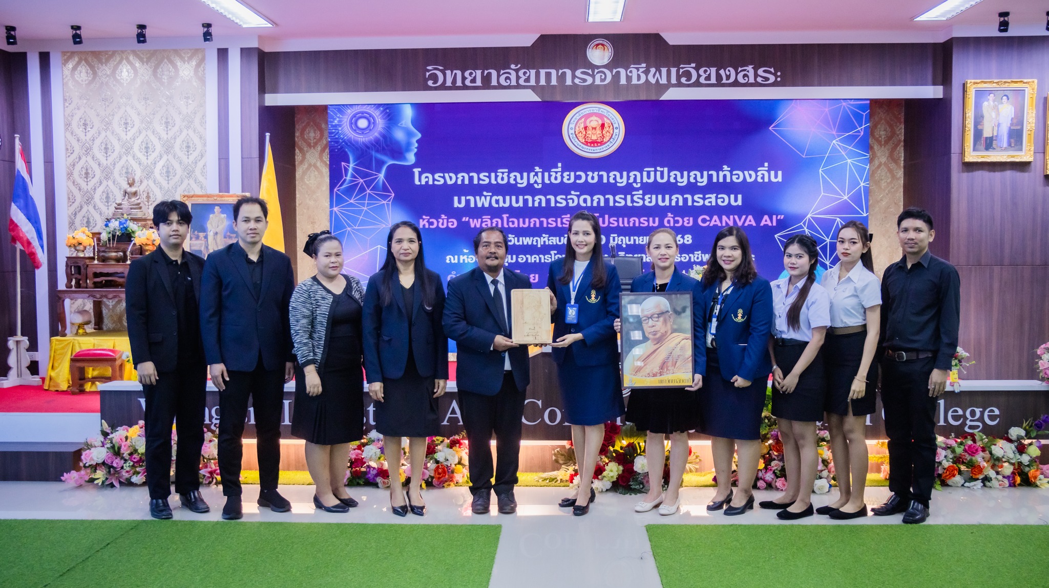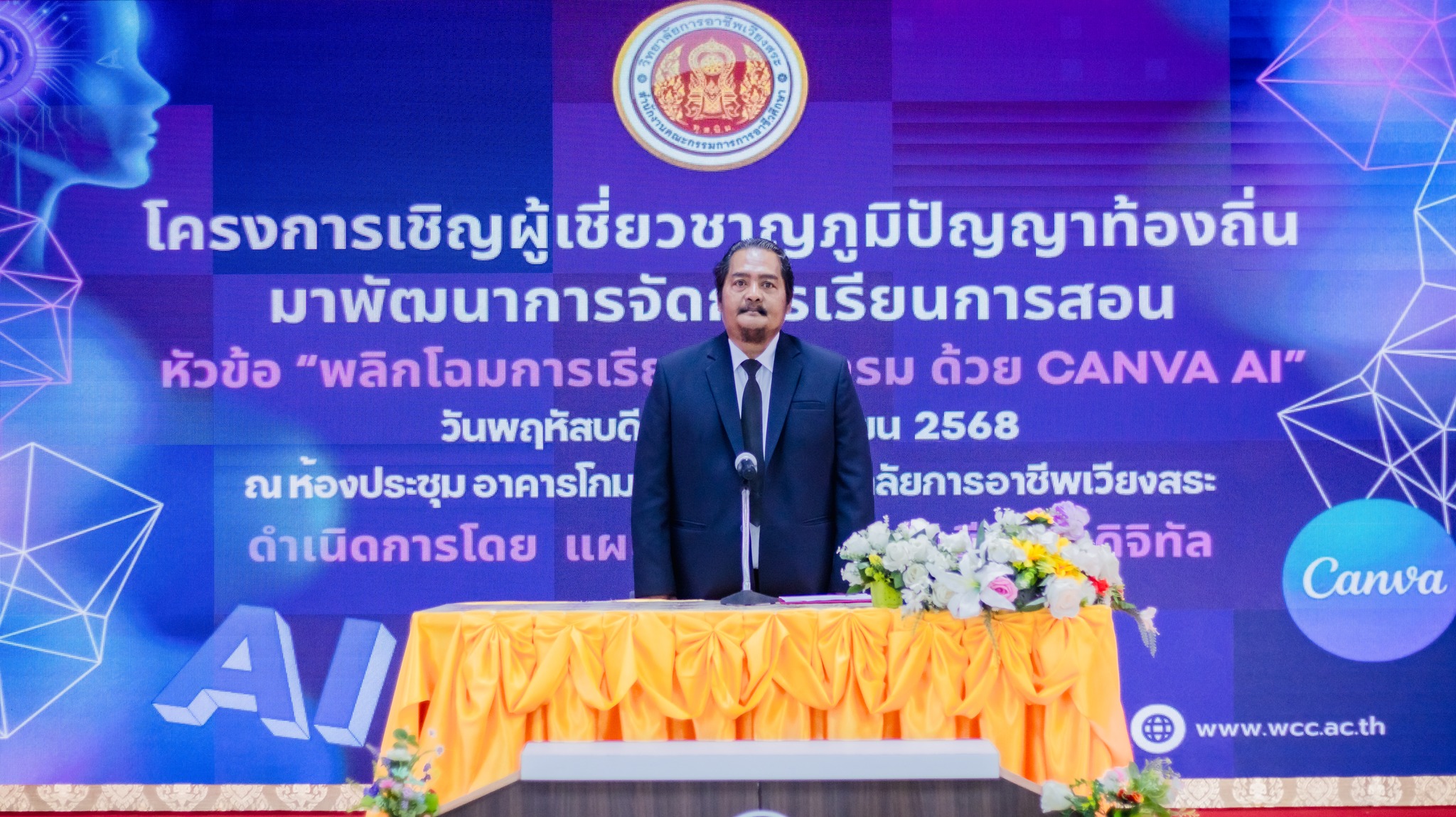 โครงการเชิญผู้เชี่ยวชาญภูมิปัญญาท้องถิ่นมาพัฒนาการจัดการเรียนการสอน หัวข้อ “พลิกโฉมการเรียนโปรแกรม ด้วย CANVA AI” จัดขึ้นเพื่อพัฒนาศักยภาพครูและนักศึกษาในการใช้เทคโนโลยีดิจิทัลและปัญญาประดิษฐ์ (AI) ในการออกแบบและสร้างสื่อการเรียนการสอนอย่างสร้างสรรค์ ส่งเสริมการเรียนรู้ให้ทันต่อการเปลี่ยนแปลงของเทคโนโลยีในยุคดิจิทัล และเปิดโอกาสให้นักศึกษาได้เรียนรู้จากผู้เชี่ยวชาญภูมิปัญญาท้องถิ่นเพื่อนำความรู้ไปประยุกต์ใช้ในการเรียนและการประกอบอาชีพในอนาคต