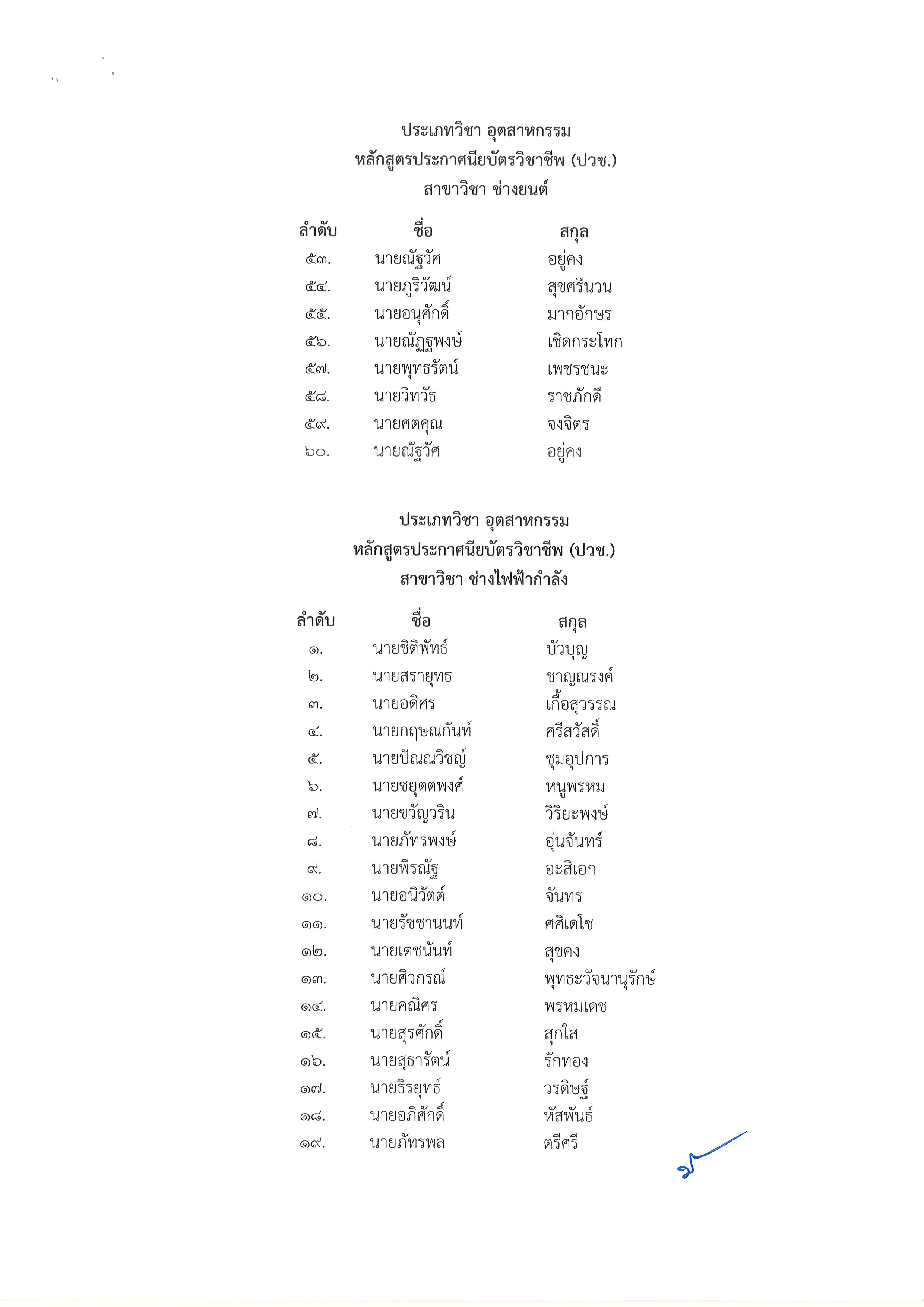 ระดับ ปวช. และ ปวส. รอบโควตา (รอบที่ 1) ประจำปีการศึกษา 2569