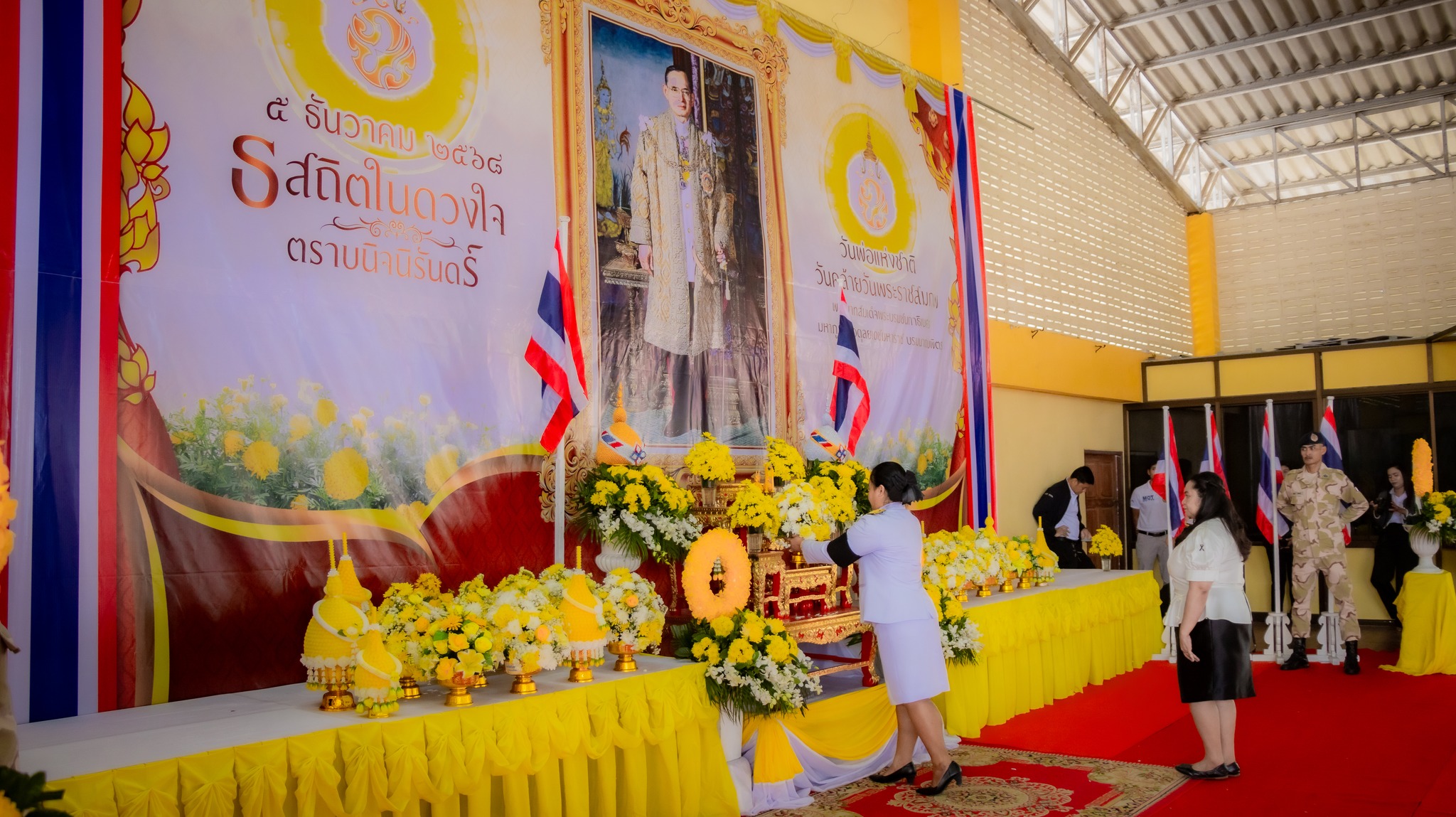 วันศุกร์ที่ 5 ธันวาคม 2568 คณะผู้บริหาร พร้อมด้วยคณะครู บุคลากรทางการศึกษา และนักเรียน นักศึกษา เข้าร่วมพิธีทำบุญตักบาตรถวายพระราชกุศล และพิธีวางพานพุ่มดอกไม้ถวายราชสักการะ เนื่องในวันคล้ายวันพระบรมราชสมภพของพระบาทสมเด็จพระบรมชนกาธิเบศร มหาภูมิพลอดุลยเดชมหาราช บรมนาถบพิตร 5 ธันวาคม ประจำปี 2568 โดยมีนายสมชาย สมวงศ์ ปลัดอาวุโสอำเภอเวียงสระ รักษาราชการแทนนายอำเภอเวียงสระ เป็นประธานในพิธีฯ เพื่อแสดงถึงความจงรักภักดี และน้อมรำลึกในพระมหากรุณาธิคุณอันหาที่สุดมิได้ ในพระบาทสมเด็จพระปรมินทรมหาภูมิพลอดุลยเดชมหาราช บรมนาถบพิตร ในหลวงรัชกาลที่ 9 ณ บริเวณหลังสถานีรถไฟบ้านส้อง และหอประชุมโรงเรียนบ้านหัวสะพานมิตรภาพที่ 217