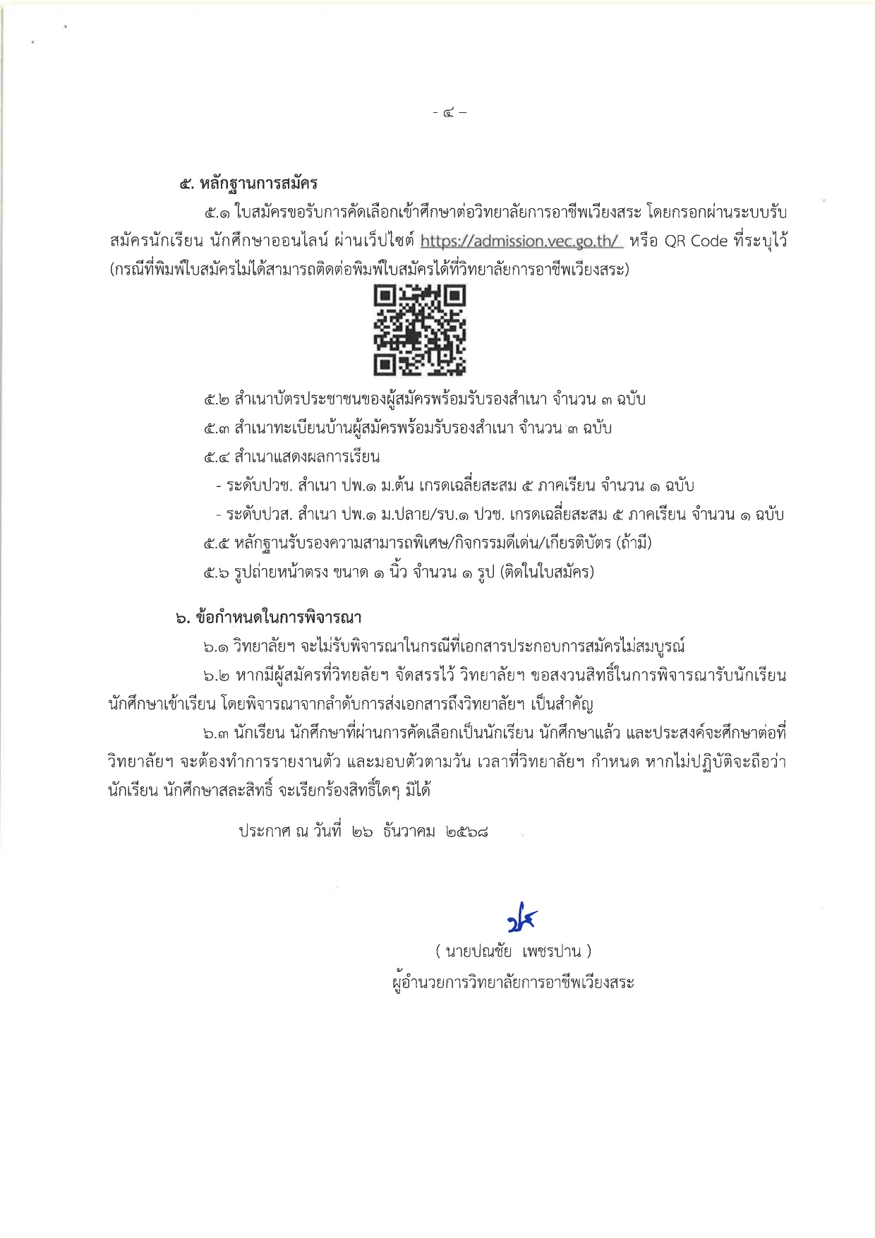วิทยาลัยการอาชีพเวียงสระ เปิดรับสมัครนักเรียน นักศึกษาใหม่ ประจำปีการศึกษา 2569 ระดับประกาศนียบัตรวิชาชีพ (ปวช.) สำหรับผู้สำเร็จการศึกษาระดับมัธยมศึกษาตอนต้น (ม.3) และระดับประกาศนียบัตรวิชาชีพชั้นสูง (ปวส.) สำหรับผู้สำเร็จการศึกษาระดับ ปวช. ประเภทการรับสมัครรอบทั่วไป โดยรอบที่ 1 เปิดรับสมัครระหว่างวันที่ 25 ธันวาคม 2568 – 3 กุมภาพันธ์ 2569 และรอบที่ 2 ระหว่างวันที่ 9 กุมภาพันธ์ – 24 มีนาคม 2569 ประกาศผลการคัดเลือกวันที่ 5 กุมภาพันธ์ 2569 (รอบที่ 1) และวันที่ 26 มีนาคม 2569 (รอบที่ 2) ผู้ผ่านการคัดเลือกต้องเข้าสอบสัมภาษณ์ รายงานตัว และยืนยันสิทธิ์ในวันที่ 7 กุมภาพันธ์ 2569 (รอบที่ 1) และวันที่ 28 มีนาคม 2569 (รอบที่ 2) สมัครได้ทางออนไลน์ที่ https://admission.vec.go.th/web/student.htm?mode=init หรือสมัครด้วยตนเอง ณ วิทยาลัยการอาชีพเวียงสระ ในวันและเวลาราชการ ดูรายละเอียดเพิ่มเติมได้ที่ https://www.wcc.ac.th/ และ Facebook : วิทยาลัยการอาชีพเวียงสระ