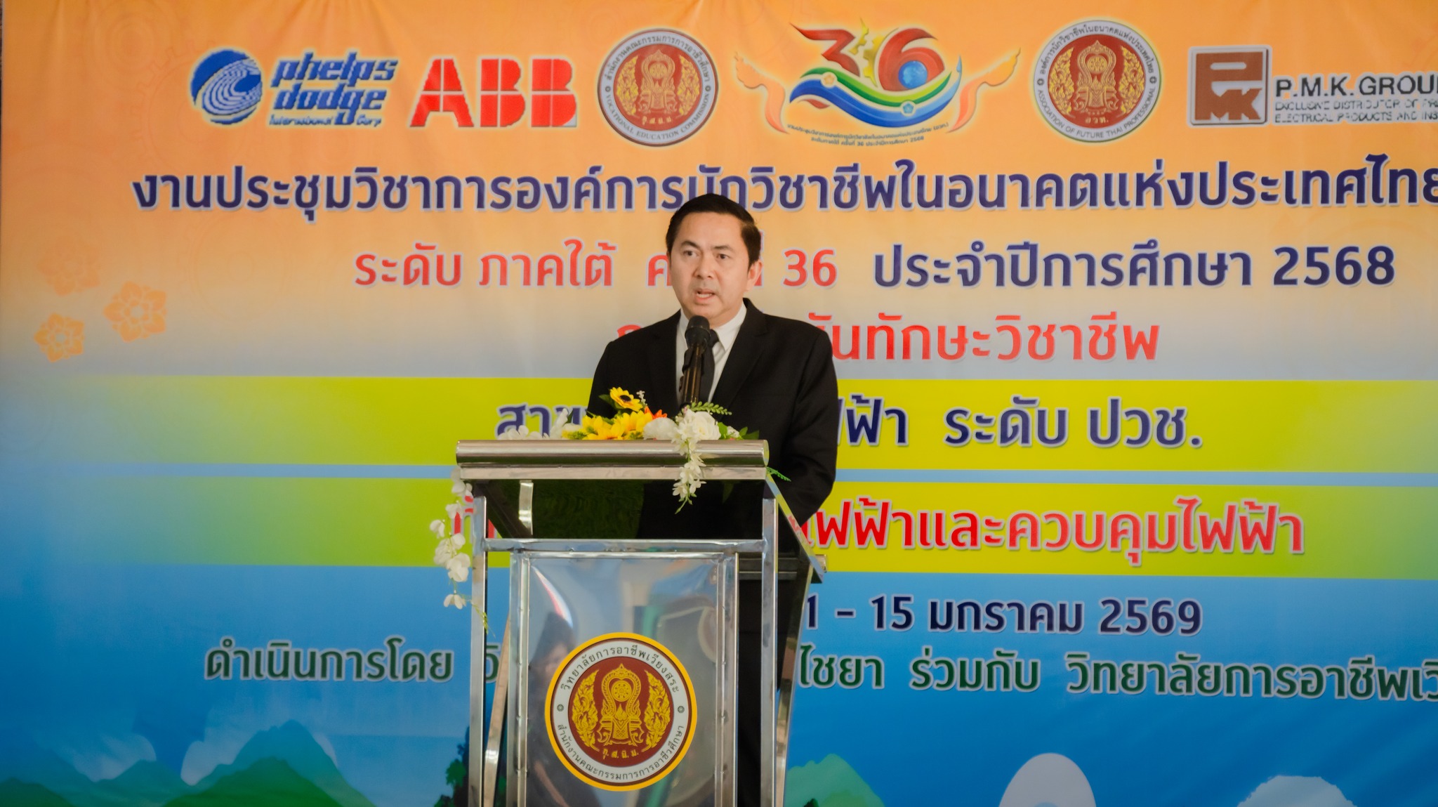 เข้าร่วมพิธีเปิดงานประชุมวิชาการองค์การนักวิชาชีพในอนาคตแห่งประเทศไทย (อวท.) และการแข่งขันทักษะวิชาชีพและทักษะพื้นฐาน ประจำปีการศึกษา ๒๕๖๘ ระดับภาคใต้ ครั้งที่ ๓๖