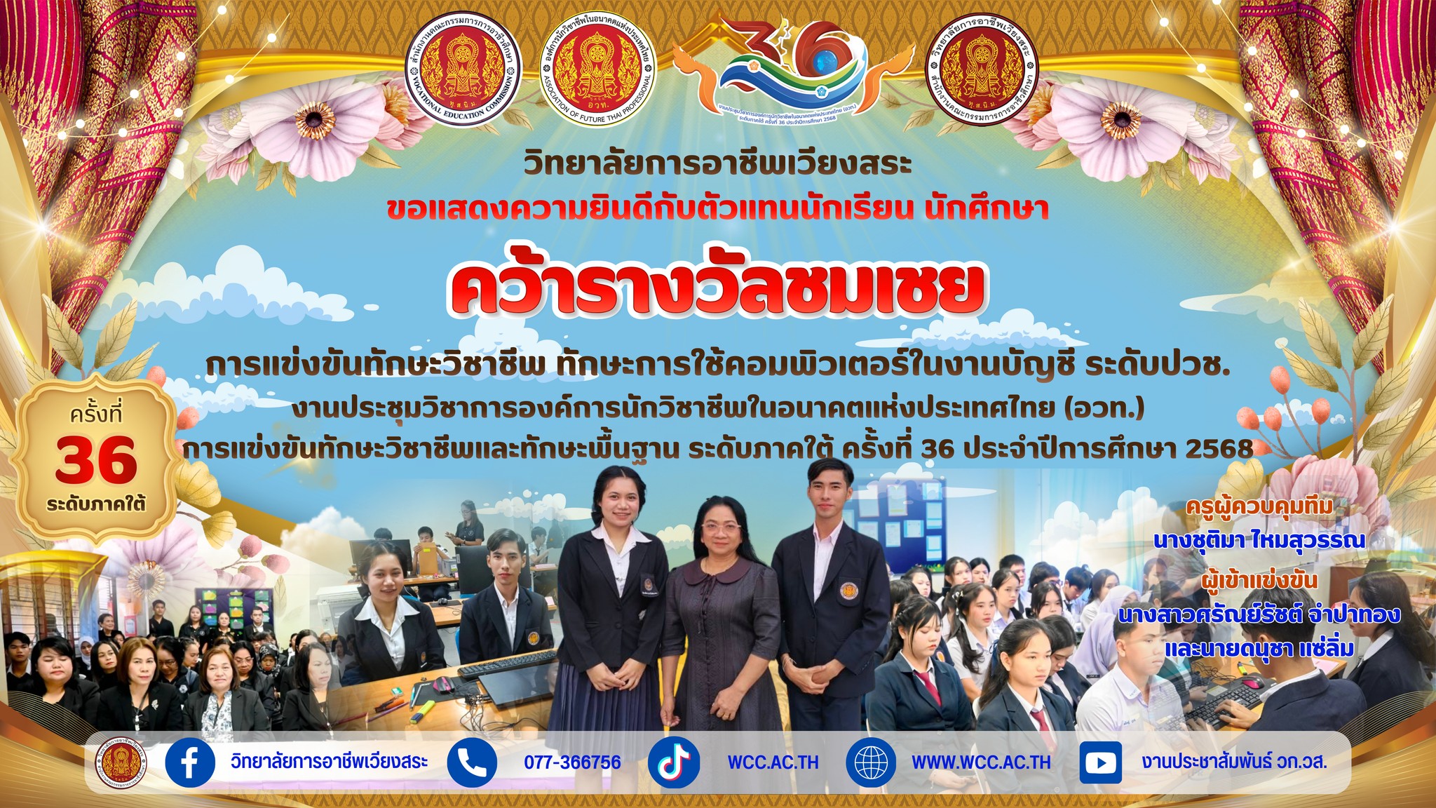 คว้ารางวัลคว้ารางวัลชมเชย ทักษะการใช้คอมพิวเตอร์ในงานบัญชี ระดับปวช. ระดับภาคใต้ ครั้งที่ 36