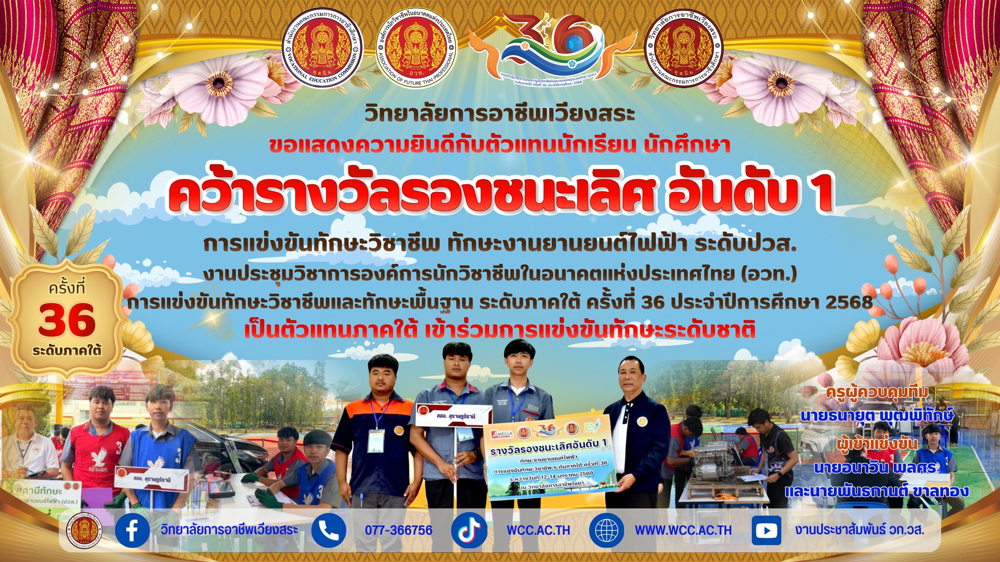 คว้ารางวัลรองชนะเลิศ อันดับ 1 ทักษะงานยานยนต์ไฟฟ้า ระดับปวส. ระดับปวช. ระดับภาคใต้ ครั้งที่ 36
