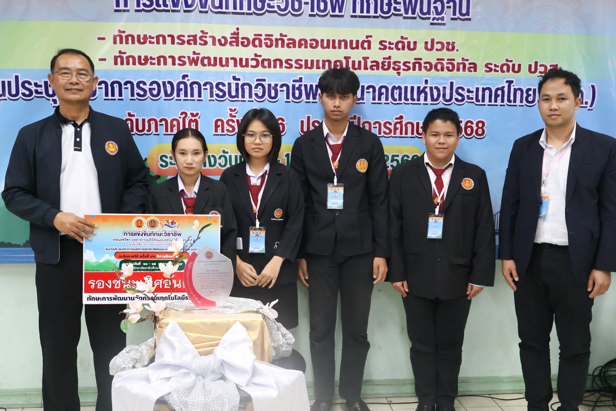 คว้ารางวัลรองชนะเลิศ อันดับ 3 ทักษะการพัฒนานวัตกรรมเทคโนโลยีธุรกิจดิจิทัล ระดับปวส. ระดับภาคใต้ ครั้งที่ 36