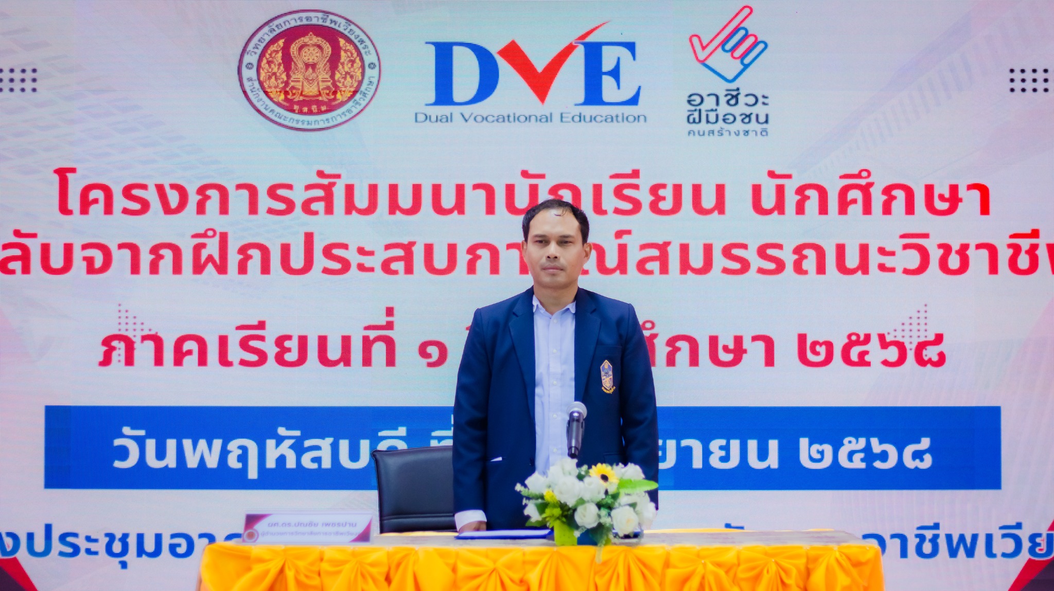 โครงการสัมมนานักเรียน นักศึกษา กลับจากฝึกประสบการณ์สมรรถนะวิชาชีพ ภาคเรียนที่ 1 ปีการศึกษา 2568 การจัดโครงการในครั้งนี้ มีวัตถุประสงค์เพื่อเปิดโอกาสให้นักเรียน นักศึกษาได้สะท้อนผลการเรียนรู้จากการฝึกประสบการณ์จริง แลกเปลี่ยนความคิดเห็นและประสบการณ์กับเพื่อนร่วมรุ่นและครูผู้สอน พร้อมทั้งนำข้อค้นพบมาปรับใช้ในการพัฒนาตนเอง เสริมสร้างทักษะสมรรถนะวิชาชีพให้มีความรู้ ความสามารถ และทัศนคติที่เหมาะสมต่อการทำงานในสถานประกอบการอย่างมีประสิทธิภาพ