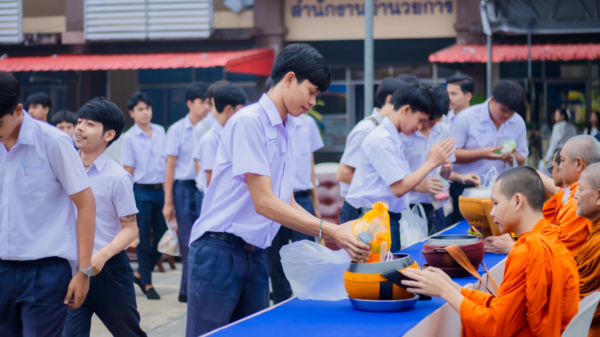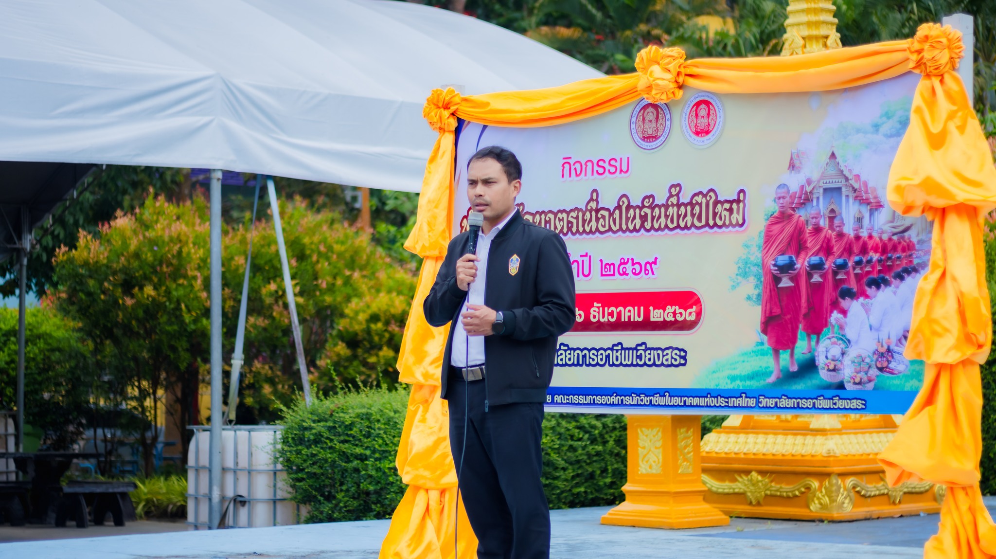 วันศุกร์ที่ 26 ธันวาคม 2568 ดร.ปณชัย เพชรปาน ผู้อำนวยการวิทยาลัยการอาชีพเวียงสระ และคณะผู้บริหาร ครู บุคลากรทางการศึกษา และนักเรียน นักศึกษา วิทยาลัยการอาชีพเวียงสระ ร่วมกิจกรรมทำบุญตักบาตรเนื่องในวันปีใหม่ ประจำปี 2569 และสืบสานประเพณีและวัฒนธรรมอันดีงามของไทย เสริมสร้างความเป็นสิริมงคล ความสามัคคี และปลูกฝังคุณธรรมจริยธรรมให้แก่ผู้บริหาร ครู บุคลากรทางการศึกษา ตลอดจนนักเรียน นักศึกษา เนื่องในโอกาสวันขึ้นปีใหม่ ประจำปี 2569 ณ ลานกิจกรรมหน้าเสาธง วิทยาลัยการอาชีพเวียงสระ