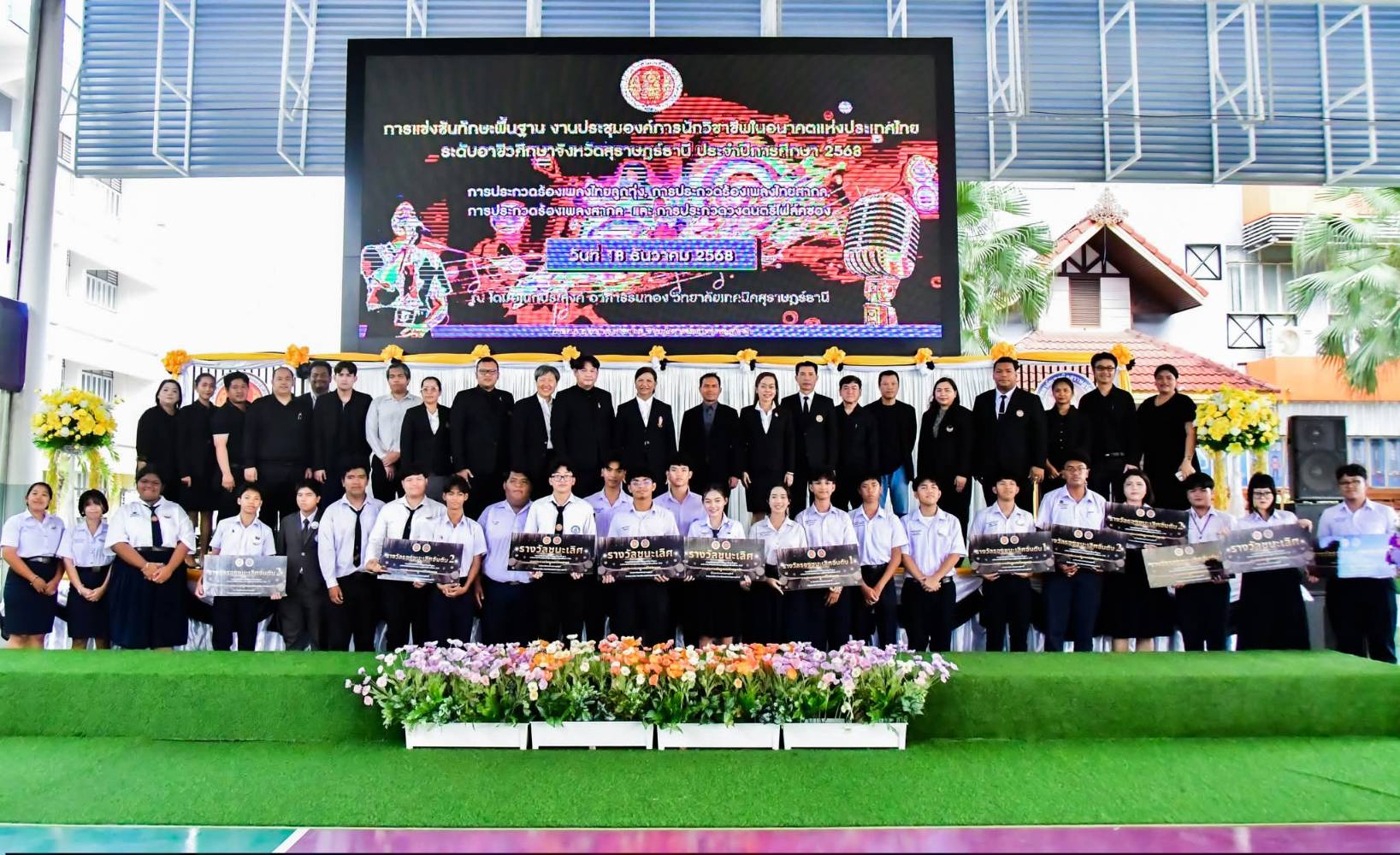 วิทยาลัยการอาชีพเวียงสระ ขอแสดงความยินดีกับตัวแทนนักเรียน นักศึกษา ที่ได้รับรางวัลรองชนะเลิศอันดับ 1 จากการแข่งขันทักษะพื้นฐาน การประกวดร้องเพลงไทยลูกทุ่ง ผู้เข้าแข่งขัน ได้แก่ นายณตวัน ไกรนรา โดยมีนางสาวสุชัญญา แสงอุไร เป็นครูผู้ควบคุมทีม ในงานประชุมวิชาการองค์การนักวิชาชีพในอนาคตแห่งประเทศไทย (อวท.) การแข่งขันทักษะวิชาชีพและทักษะพื้นฐาน ระดับจังหวัดสุราษฎร์ธานี ประจำปีการศึกษา 2568 ทั้งนี้ขอชื่นชมในความมุ่งมั่น ตั้งใจ และความสามารถอันยอดเยี่ยม ที่นำความภาคภูมิใจมาสู่วิทยาลัยและจังหวัดสุราษฎร์ธานี