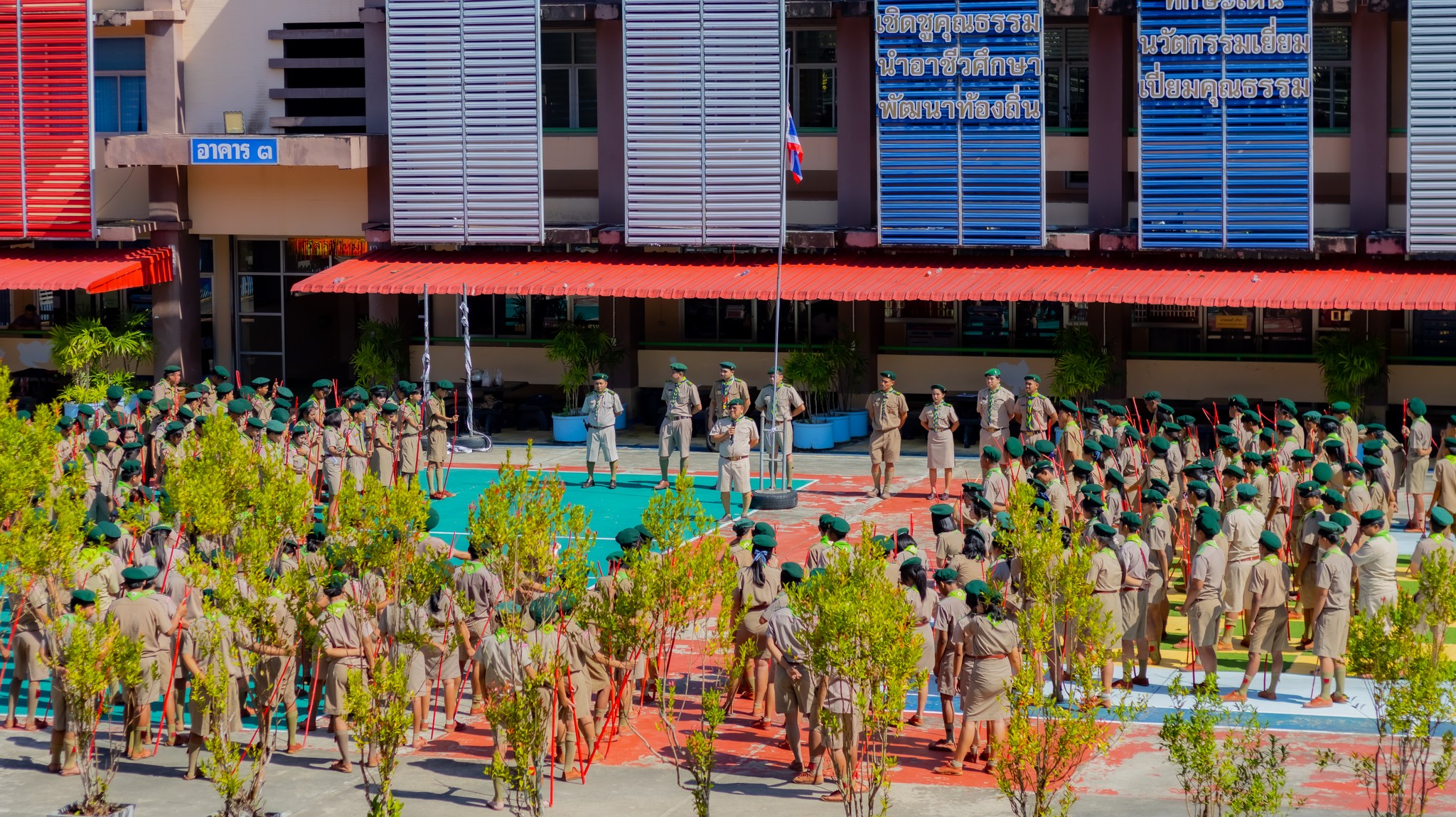 ในการนี้ คณะผู้บริหาร ครู บุคลากรทางการศึกษา ตลอดจนนักเรียนระดับประกาศนียบัตรวิชาชีพ (ปวช.1) เข้าร่วมกิจกรรมอย่างพร้อมเพรียง ณ วิทยาลัยการอาชีพเวียงสระ เพื่อร่วมเรียนรู้และพัฒนาทักษะด้านระเบียบวินัย ความอดทน ความเสียสละ และความสามัคคี ผ่านกระบวนการกิจกรรมลูกเสือวิสามัญ