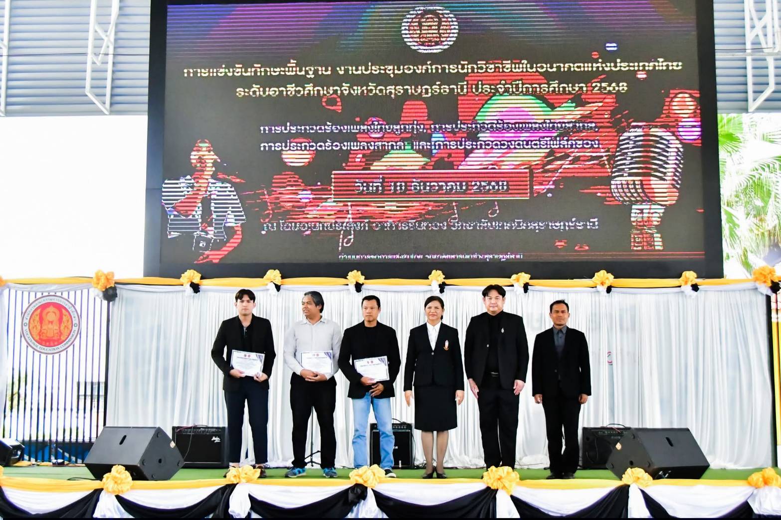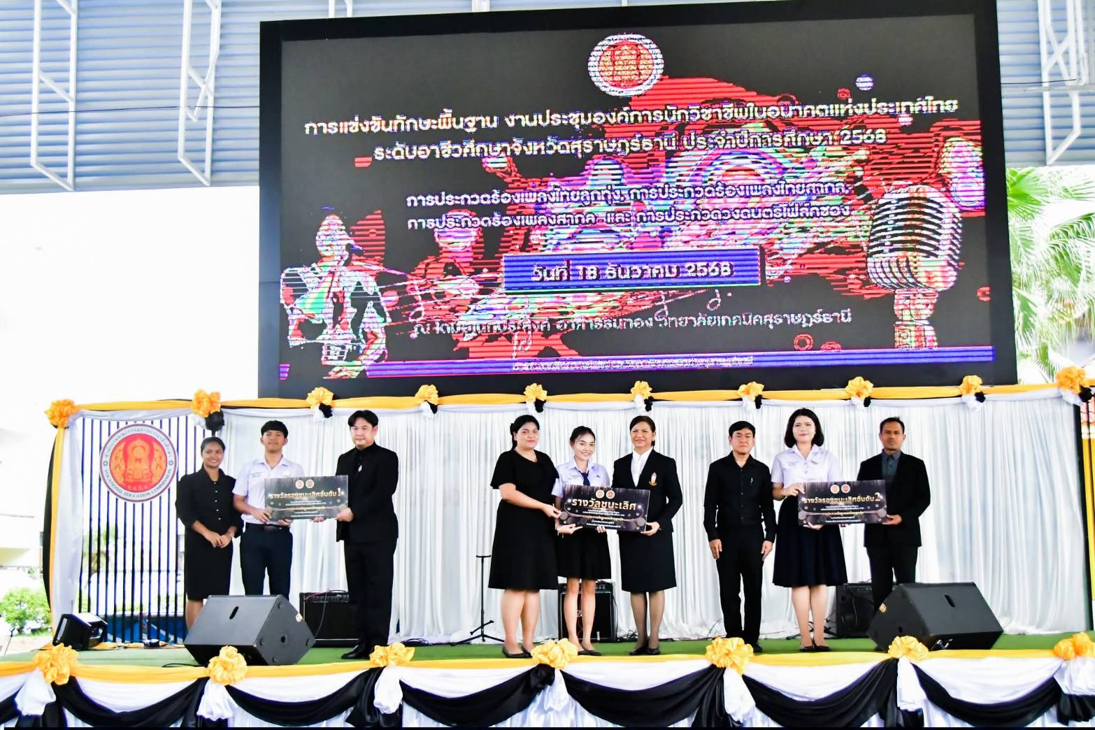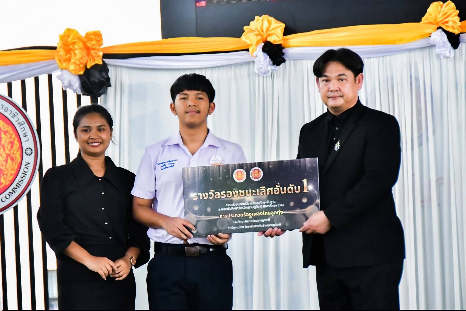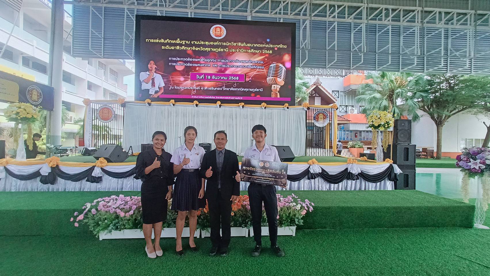 วิทยาลัยการอาชีพเวียงสระ ขอแสดงความยินดีกับตัวแทนนักเรียน นักศึกษา ที่ได้รับรางวัลรองชนะเลิศอันดับ 1 จากการแข่งขันทักษะพื้นฐาน การประกวดร้องเพลงไทยลูกทุ่ง ผู้เข้าแข่งขัน ได้แก่ นายณตวัน ไกรนรา โดยมีนางสาวสุชัญญา แสงอุไร เป็นครูผู้ควบคุมทีม ในงานประชุมวิชาการองค์การนักวิชาชีพในอนาคตแห่งประเทศไทย (อวท.) การแข่งขันทักษะวิชาชีพและทักษะพื้นฐาน ระดับจังหวัดสุราษฎร์ธานี ประจำปีการศึกษา 2568 ทั้งนี้ขอชื่นชมในความมุ่งมั่น ตั้งใจ และความสามารถอันยอดเยี่ยม ที่นำความภาคภูมิใจมาสู่วิทยาลัยและจังหวัดสุราษฎร์ธานี