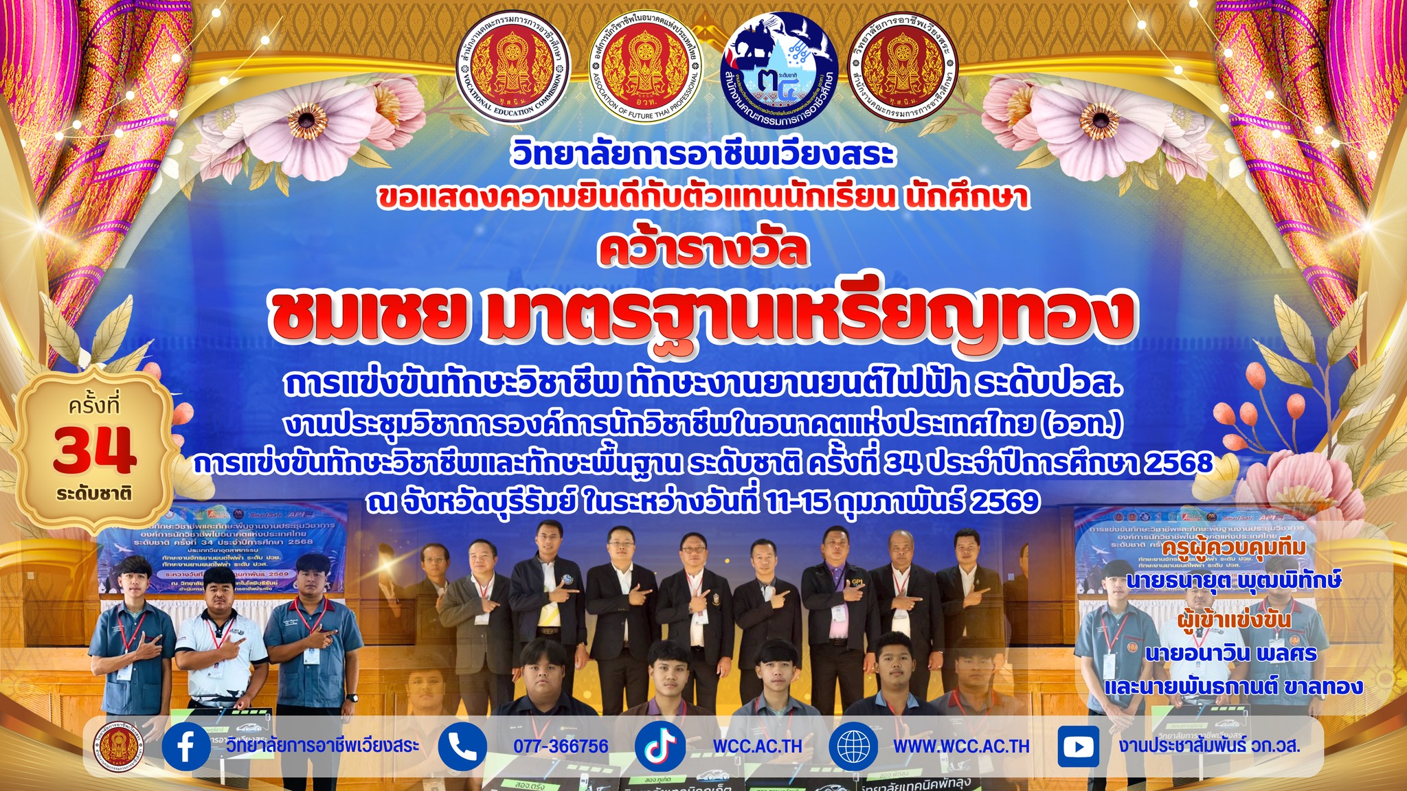 คว้ารางวัลชนะเลิศอันดับ 1 การแข่งขันทักษะวิชาชีพ และทักษะพื้นฐาน ระดับ ภาคใต้ ครั้งที่ 35 ประจำปีการศึกษา 2567