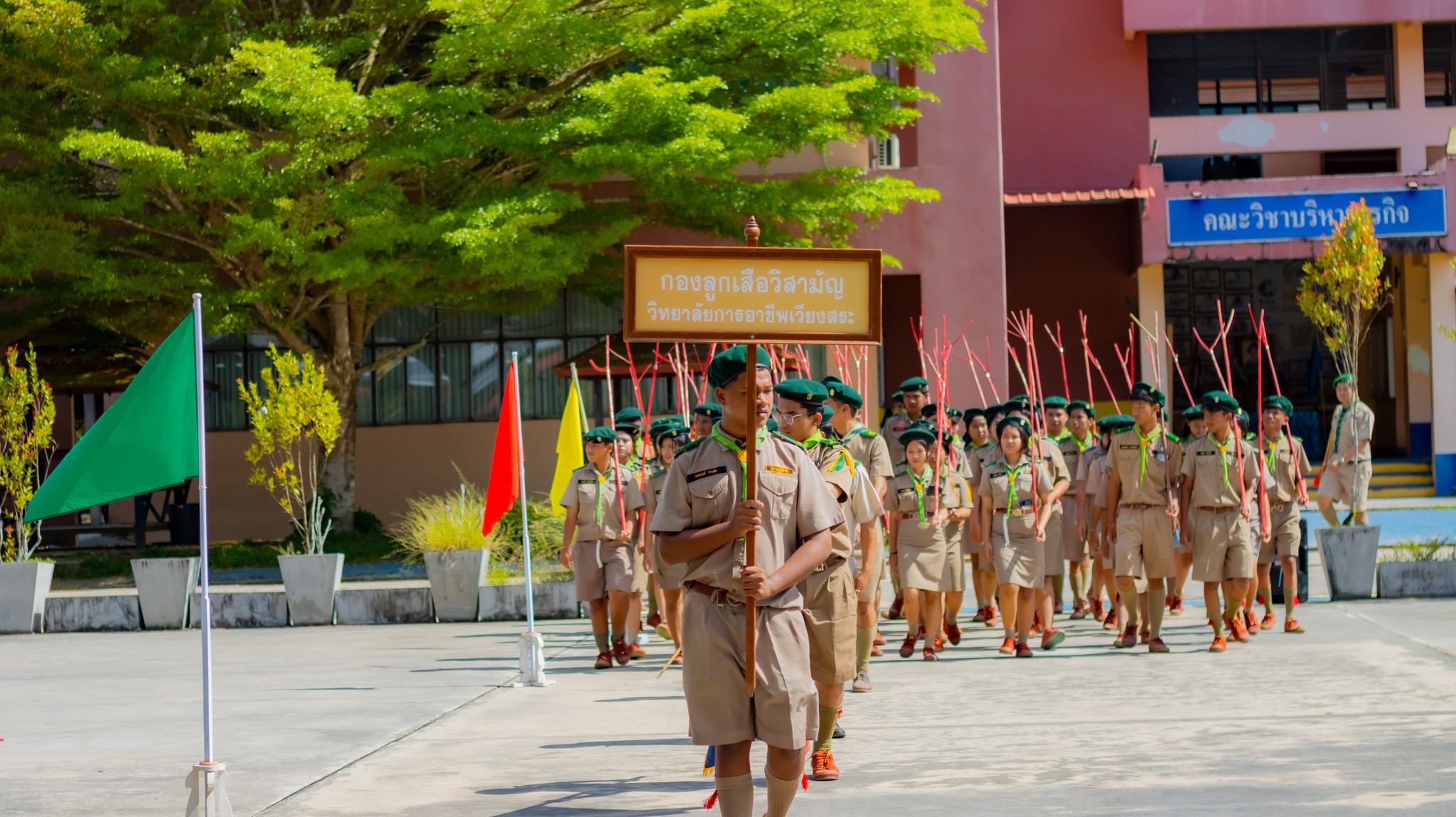 วันอังคารที่ 23 กันยายน 2568 ผศ.ดร.ปณชัย เพชรปาน ผู้อำนวยการวิทยาลัยการอาชีพเวียงสระ มอบหมายให้ นายจักรินทร์ โกละกะ รองผู้อำนวยการฝ่ายพัฒนากิจการนักเรียน นักศึกษา เป็นประธานในพิธีเปิดโครงการ Day Camp ลูกเสือวิสามัญ ประจำปีการศึกษา 2568 ซึ่งเป็นกิจกรรมตามรายวิชาลูกเสือวิสามัญ 1 โดยจัดรูปแบบเข้าค่ายกลางวัน (Day Camp) อันเป็นกิจกรรมบังคับตามหลักสูตร เพื่อส่งเสริมให้นักเรียน นักศึกษา ได้รับประสบการณ์ตรงในการพัฒนาทางด้านสังคม อารมณ์ และสติปัญญา อีกทั้งยังเป็นการฝึกฝนตนเองด้านระเบียบวินัย ความอดทน ความเสียสละ และความสามัคคีในหมู่คณะ