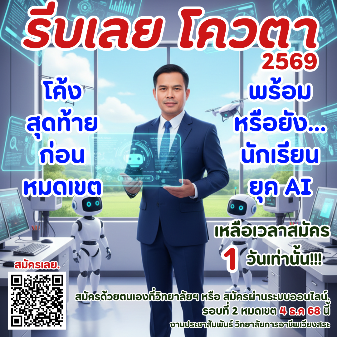 ในการนี้ คณะผู้บริหาร ครู และบุคลากรทางการศึกษา วิทยาลัยการอาชีพเวียงสระ เข้าร่วมกิจกรรมอย่างพร้อมเพรียง เพื่อเพิ่มพูนความรู้ ความเข้าใจ และพัฒนาทักษะการประยุกต์ใช้เทคโนโลยีดิจิทัลและ Ai ให้เกิดประโยชน์สูงสุดต่อการเรียนการสอนและการบริหารจัดการศึกษา โดยมีเป้าหมายสำคัญเพื่อยกระดับคุณภาพการจัดการศึกษา สอดคล้องกับนโยบายการขับเคลื่อนการศึกษาในยุคดิจิทัล 5.0 โครงการดังกล่าวจัดขึ้น ณ ห้องประชุมอาคารโกมลคีมทอง วิทยาลัยการอาชีพเวียงสระ