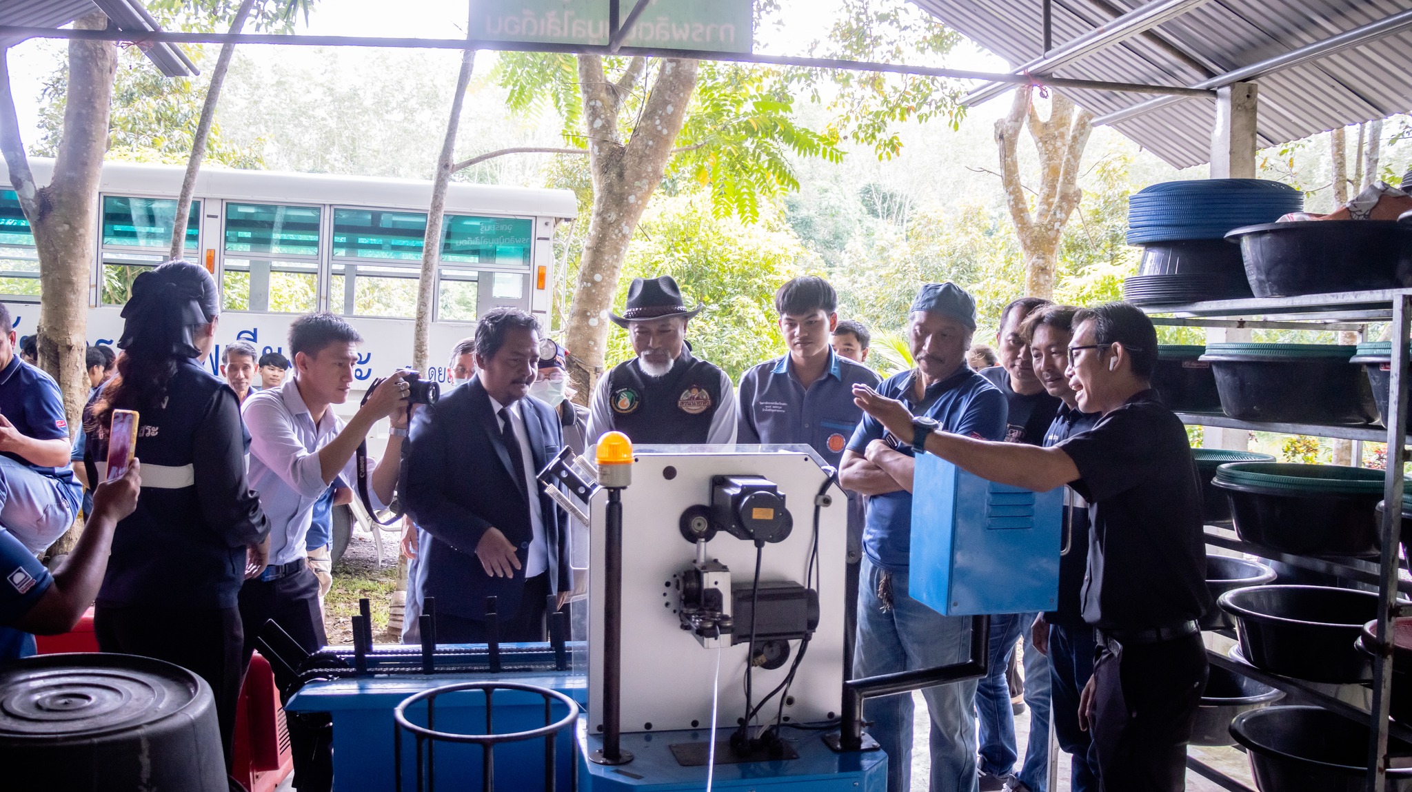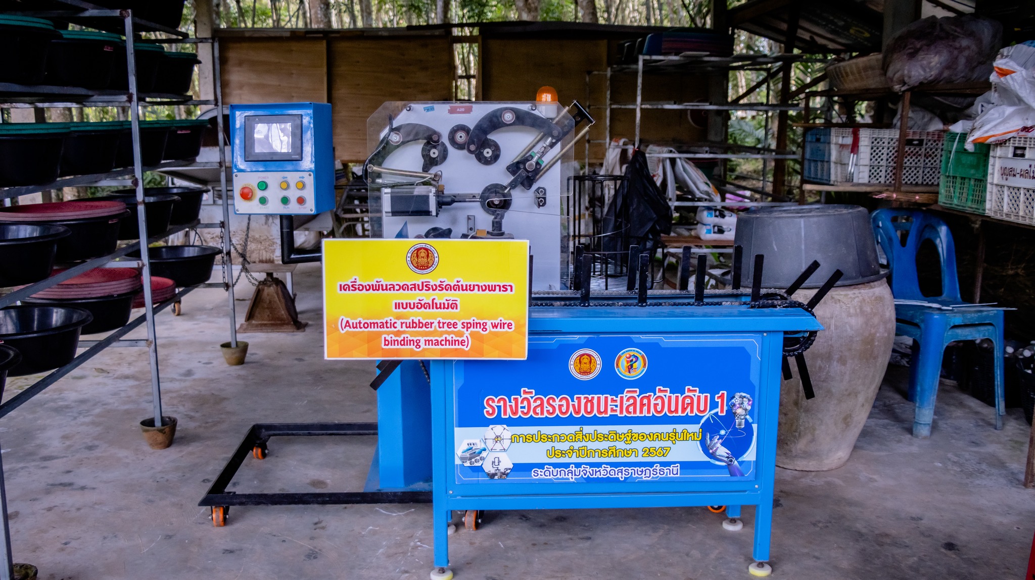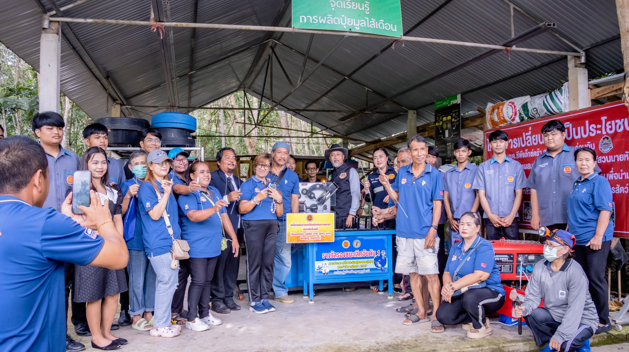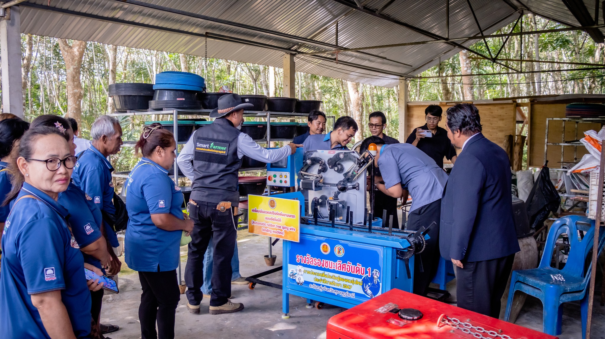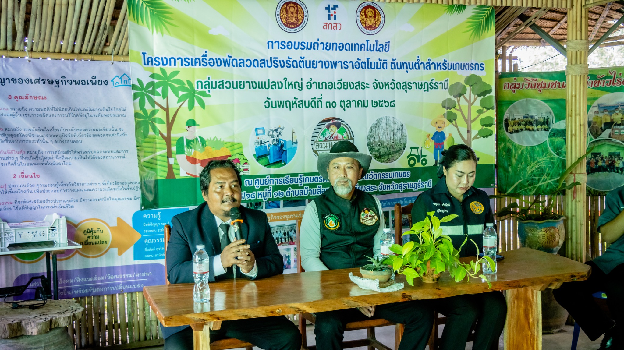 การอบรมถ่ายทอดเทคโนโลยี ภายใต้โครงการเครื่องพันลวดสปริงรัดต้นยางพาราอัตโนมัติ ต้นทุนต่ำสำหรับเกษตรกร กลุ่มสวนยางแปลงใหญ่ อำเภอเวียงสระ จังหวัดสุราษฎร์ธานี เพื่อถ่ายทอดองค์ความรู้ด้านนวัตกรรมและเทคโนโลยีการเกษตรสมัยใหม่ให้แก่เกษตรกรและผู้เข้าร่วมอบรม สามารถนำไปประยุกต์ใช้ในการพัฒนาอาชีพ เพิ่มประสิทธิภาพการผลิต ลดต้นทุนแรงงาน และเสริมสร้างความเข้มแข็งให้กับชุมชนเกษตรกรรมในพื้นที่อย่างยั่งยืน