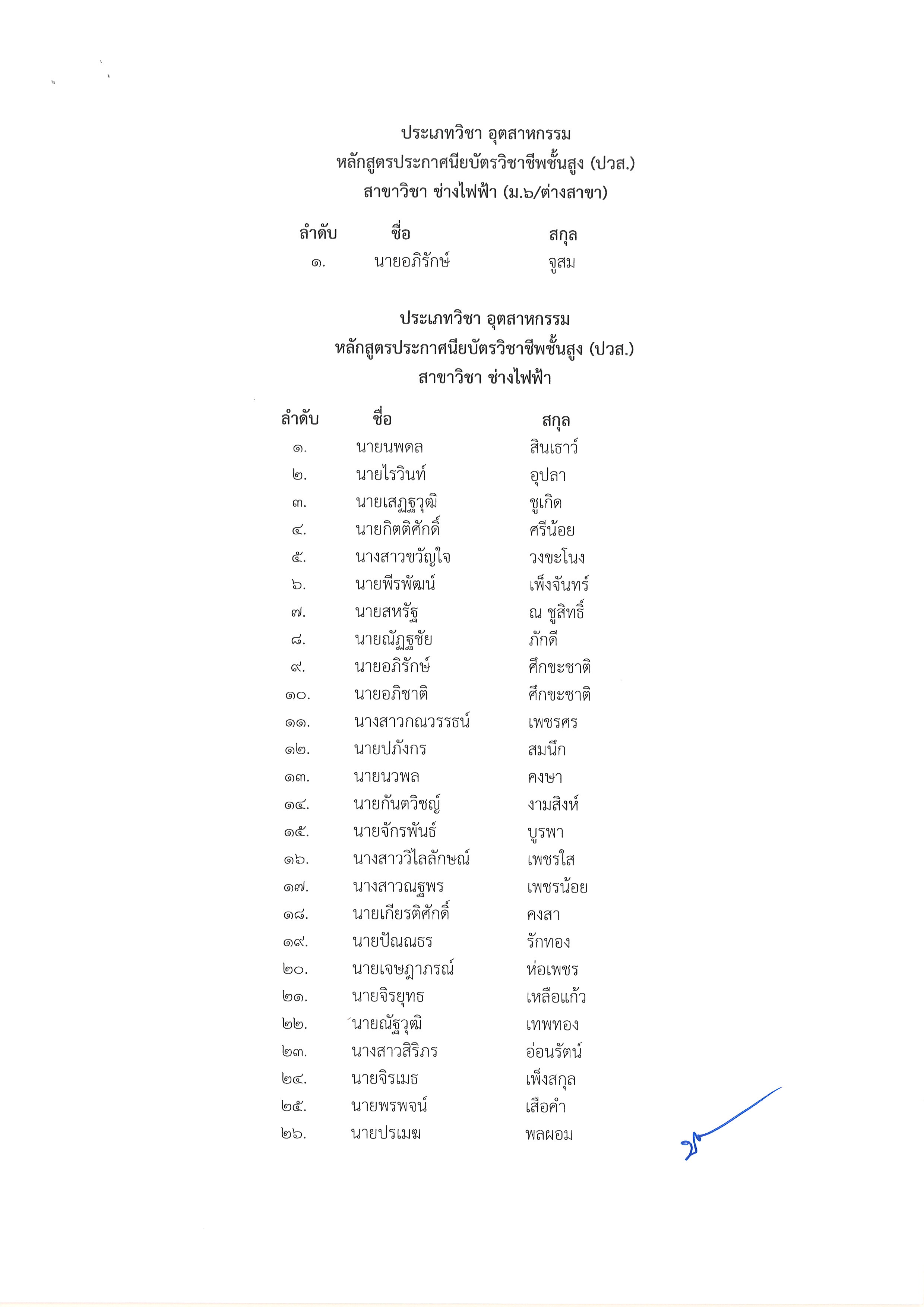 ระดับ ปวช. และ ปวส. รอบโควตา (รอบที่ 1) ประจำปีการศึกษา 2569