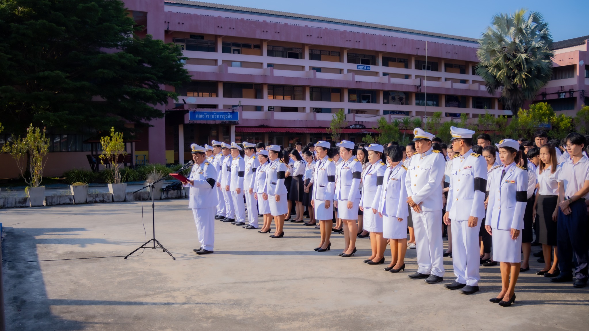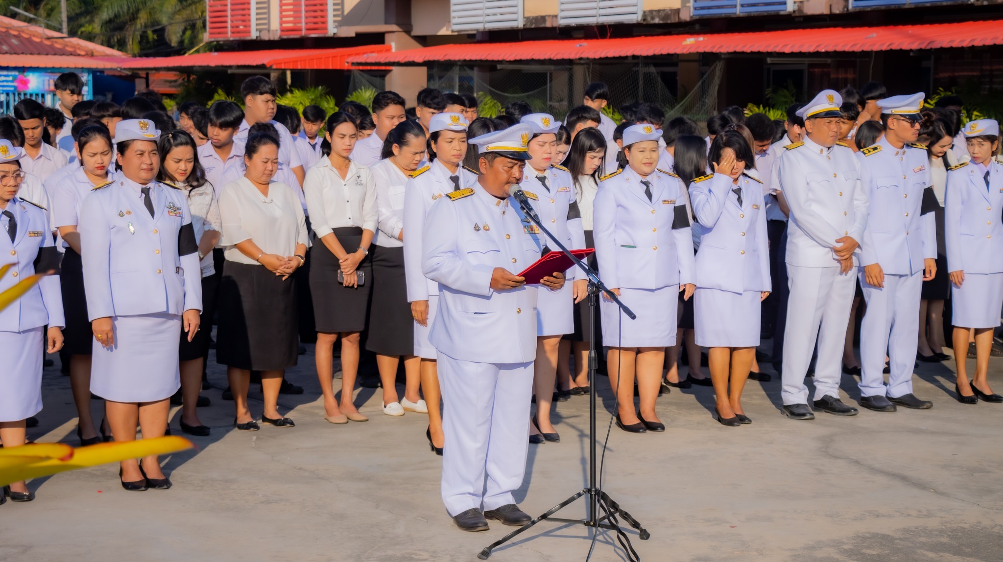 วันพฤหัสบดีที่ 4 ธันวาคม 2568 คณะผู้บริหาร คณะครู บุคลากรทางการศึกษา และนักเรียน นักศึกษา เข้าร่วมพิธีวางพานพุ่มดอกไม้ถวายราชสังการะ เนื่องในวันคล้ายวันพระบรมราชสมภพของพระบาทสมเด็จพระบรมชนกาธิเบศร มหาภูมิพลอดุลยเดชมหาราช บรมนาถบพิตร 5 ธันวาคม ประจำปี 2568 โดยมี นายมนตรี ปรีชา รองผู้อำนวยการฝ่ายบริหารทรัพยากรและฝ่ายวิชาการ เป็นประธานในพิธีฯ เพื่อแสดงถึงความจงรักภักดี และน้อมรำลึกในพระมหากรุณาธิคุณอันหาที่สุดมิได้ ในพระบาทสมเด็จพระปรมินทรมหาภูมิพลอดุลยเดชมหาราช บรมนาถบพิตร ในหลวงรัชกาลที่ 9 ณ ลานกิจกรรมหน้าเสาธง วิทยาลัยการอาชีพเวียงสระ