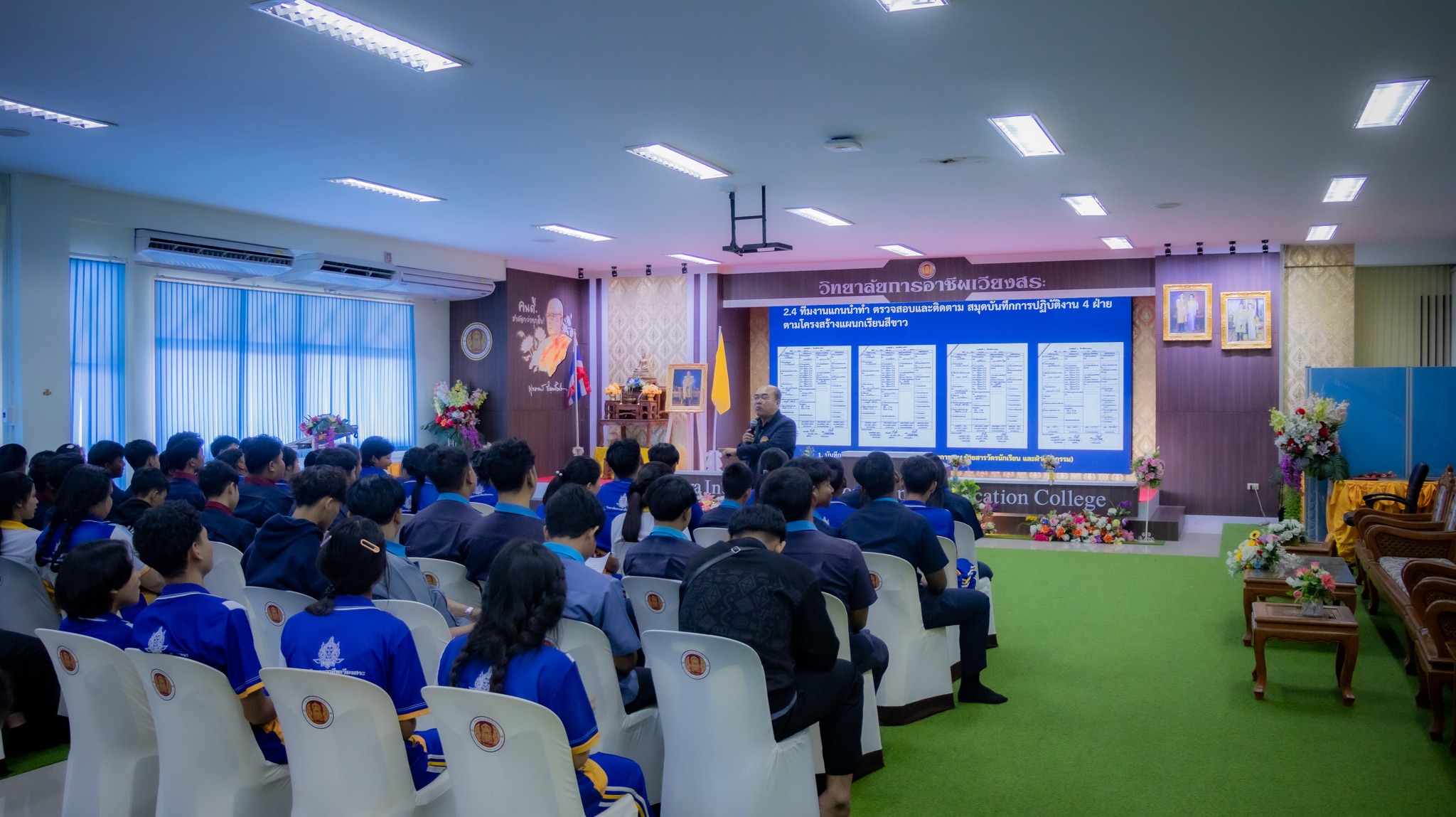 วันศุกร์ที่ 12 ธันวาคม 2568 นายมนตรี ปรีชา รองผู้อำนวยการฝ่ายบริหารทรัพยากรและฝ่ายวิชาการ เป็นประธานกล่าวเปิดโครงการสถานศึกษาสีขาว ปลอดยาเสพติด และอบายมุข (กิจกรรมอบรมนักเรียน นักศึกษาแกนนำ) ปีการศึกษา 2568 โดยมีนายจักรินทร์ โกละกะ รองผู้อำนวยการฝ่ายพัฒนากิจการนักเรียน นักศึกษา กล่าววัตถุประสงค์ของโครงการฯ เพื่อให้นักเรียน นักศึกษาได้รับความรู้และตระหนักถึงพิษภัยของยาเสพติด มีทักษะในการป้องกันและหลีกเลี่ยงปัญหายาเสพติด ตลอดจนพัฒนาแกนนำเยาวชนให้เป็นแบบอย่างที่ดีในการสร้างสภาพแวดล้อมที่ปลอดภัยภายในสถานศึกษา