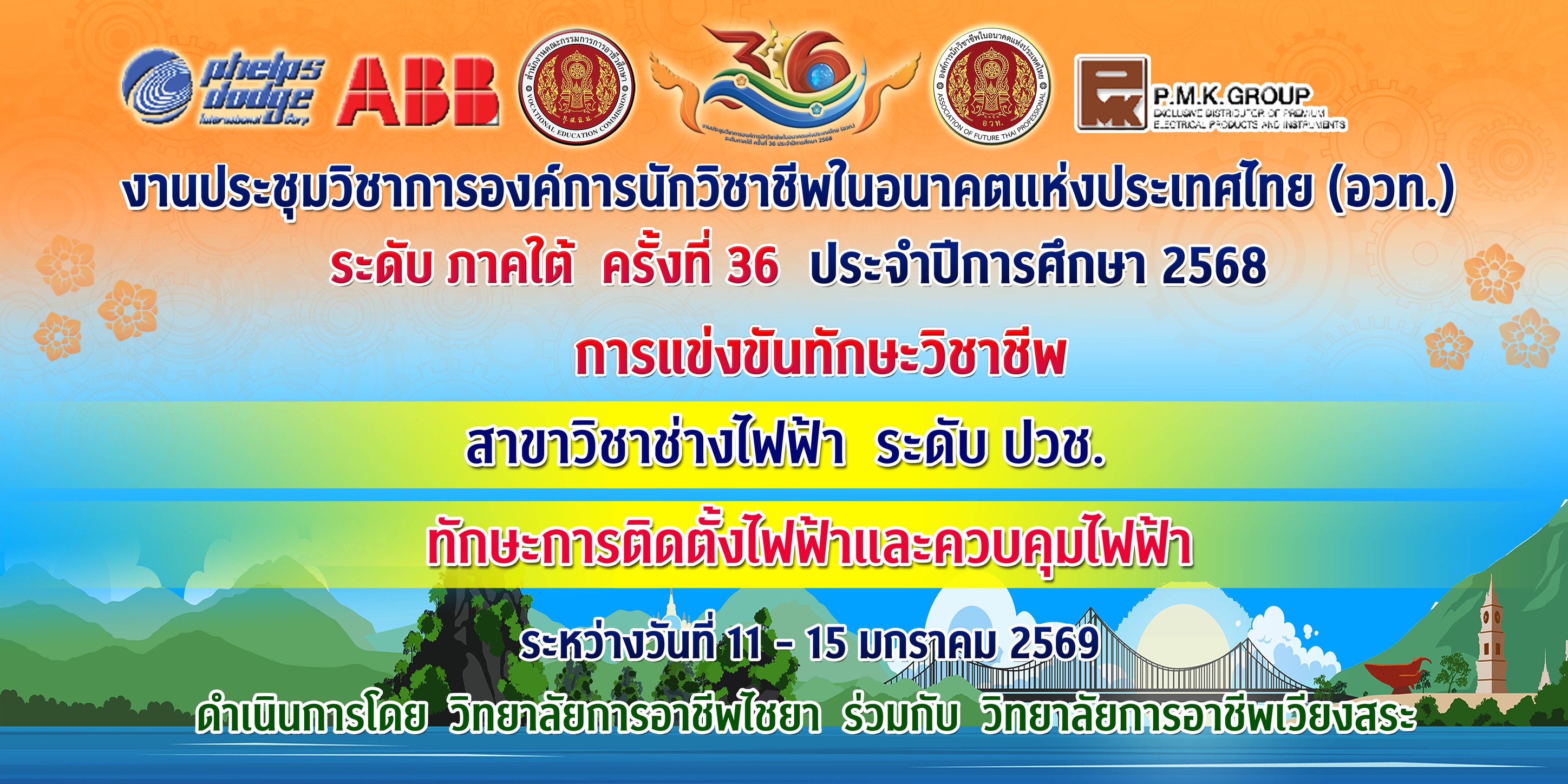 ทักษะการติดตั้งไฟฟ้าและควบคุมไฟฟ้า (ปวช.) ณ วิทยาลัยการอาชีพเวียงสระ จังหวัดสุราษฎร์ธานี โดยมี ดร.ธนภัทร แสงจันทร์ เป็นประธานในพิธีเปิด ทั้งนี้การจัดงานมีวัตถุประสงค์