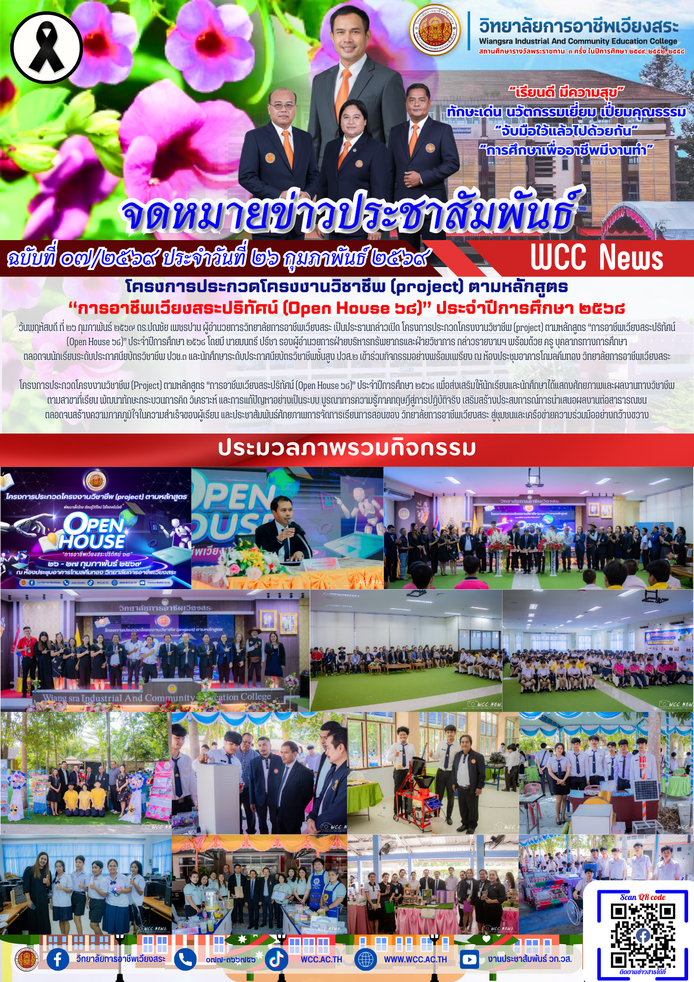 วันอังคารที่ ๑๓ มกราคม ๒๕๖๙ ดร.ปณชัย เพชรปาน ผู้อำนวยการ วิทยาลัยการอาชีพเวียงสระ พร้อมด้วยคณะผู้บริหาร ครู บุคลากรทางการศึกษา และตัวแทนนักเรียน นักศึกษา