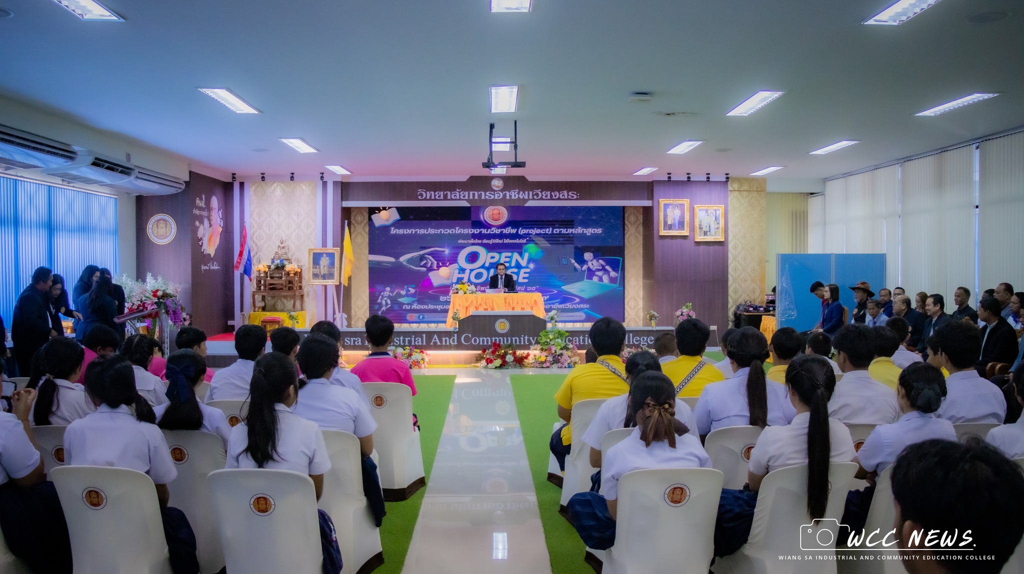 วันพฤหัสบดี ที่ 26 กุมภาพันธ์ 2569 ดร.ปณชัย เพชรปาน ผู้อำนวยการวิทยาลัยการอาชีพเวียงสระ เป็นประธานกล่าวเปิด โครงการประกวดโครงงานวิชาชีพ (project) ตามหลักสูตร “การอาชีพเวียงสระปริทัศน์ (Open House 68)” ประจำปีการศึกษา 2568 โดยมี นายมนตรี ปรีชา รองผู้อำนวยการฝ่ายบริหารทรัพยากรและฝ่ายวิชาการ กล่าวรายงานฯ พร้อมด้วย ครู บุคลากรทางการศึกษา ตลอดจนนักเรียนระดับประกาศนียบัตรวิชาชีพ ปวช.3 และนักศึกษาระดับประกาศนียบัตรวิชาชีพชั้นสูง ปวส.2 เข้าร่วมกิจกรรมอย่างพร้อมเพรียง ณ ห้องประชุมอาคารโกมลคีมทอง วิทยาลัยการอาชีพเวียงสระ